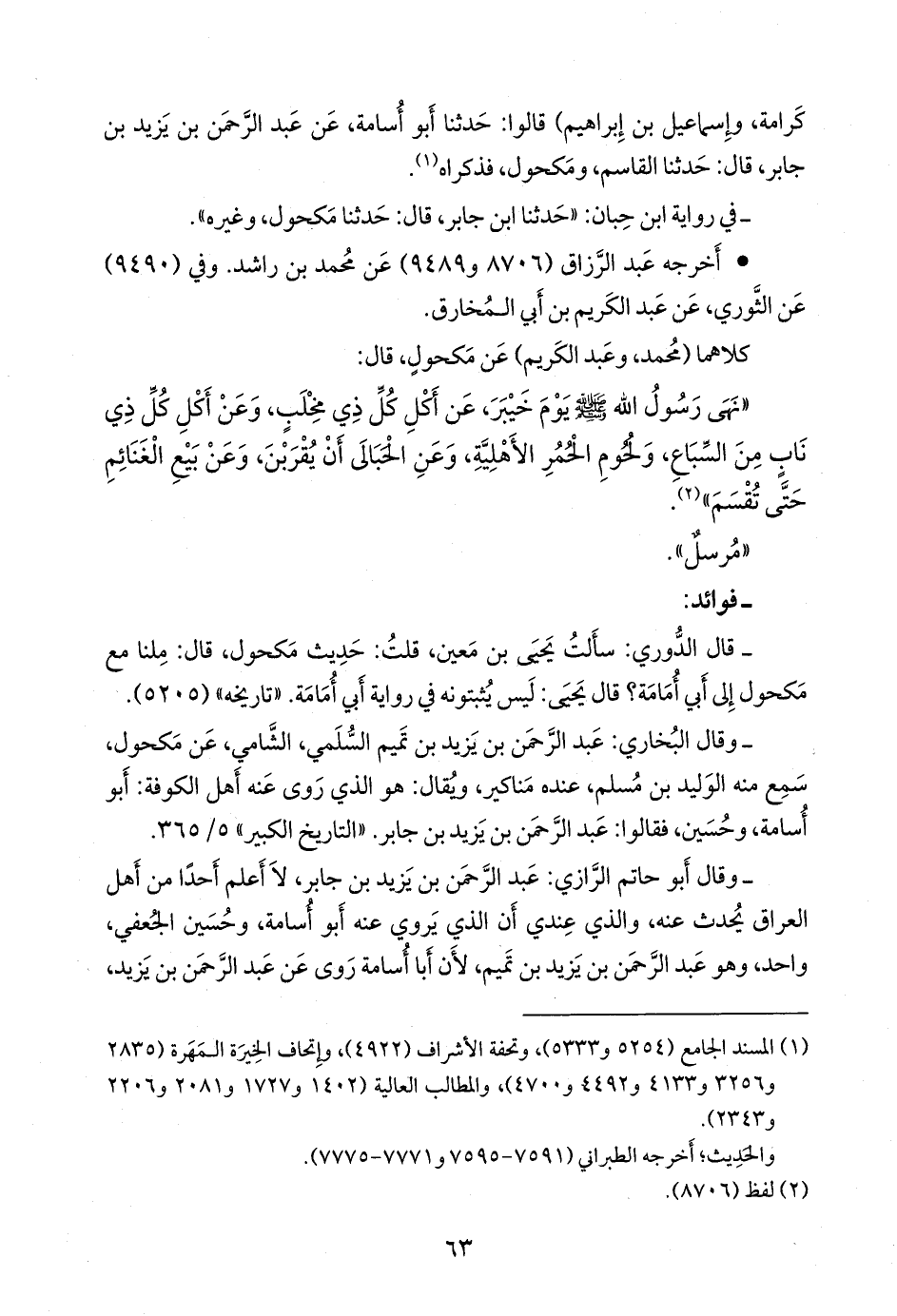 - وقال أَبو حاتم الرازي: لا يصح لمكحول سماع من أَبي أُمامة. «المراسيل» لابن أبي حاتم (٧٩١).