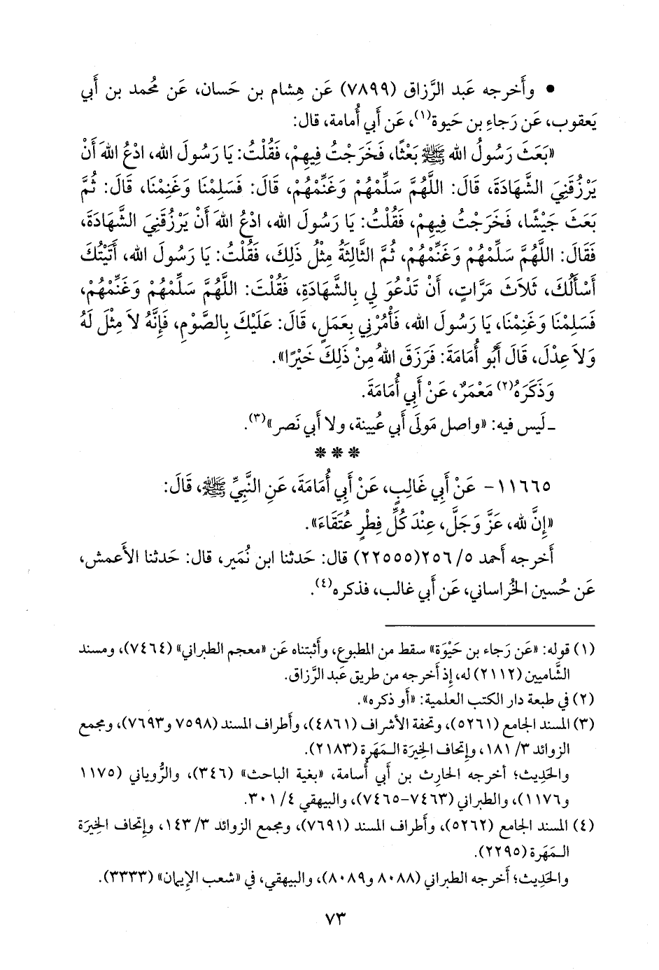 ١١٦٦٥ - عن أبي غالب، عن أَبي أُمامة، عن النبي صَلى الله عَليه وسَلم قال: