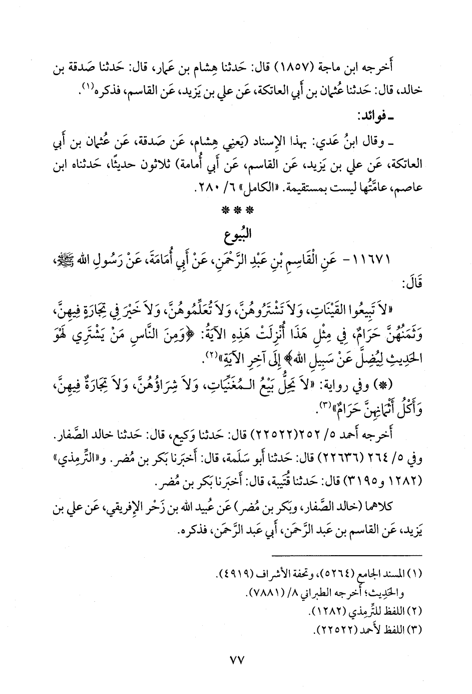 ١١٦٧١ - عن القاسم بن عبد الرَّحمَن، عن أَبي أُمامة، عن رسول الله صَلى الله عَليه وسَلم قال: