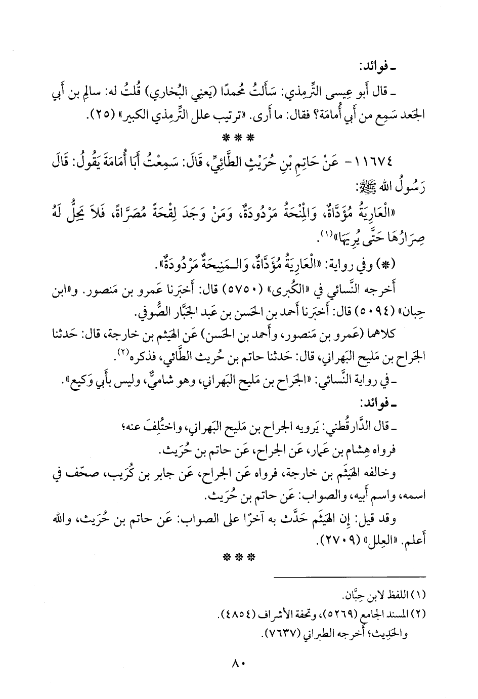 كلاهما (عَمرو بن منصور, وأحمد بن الحسن) عن الهيثم بن خارجة, قال: حدثنا الجراح بن مليح البهراني، قال: حدثنا حاتم بن حريث الطائي، فذكره (¬٢).