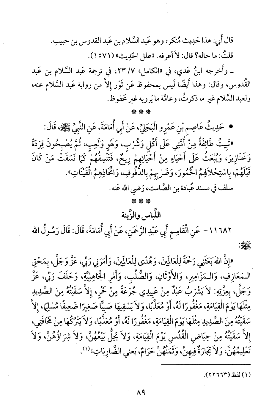 ١١٦٨٢ - عن القاسم أبي عبد الرَّحمَن، عن أَبي أُمامة، قال: قال رسول الله صَلى الله عَليه وسَلم: