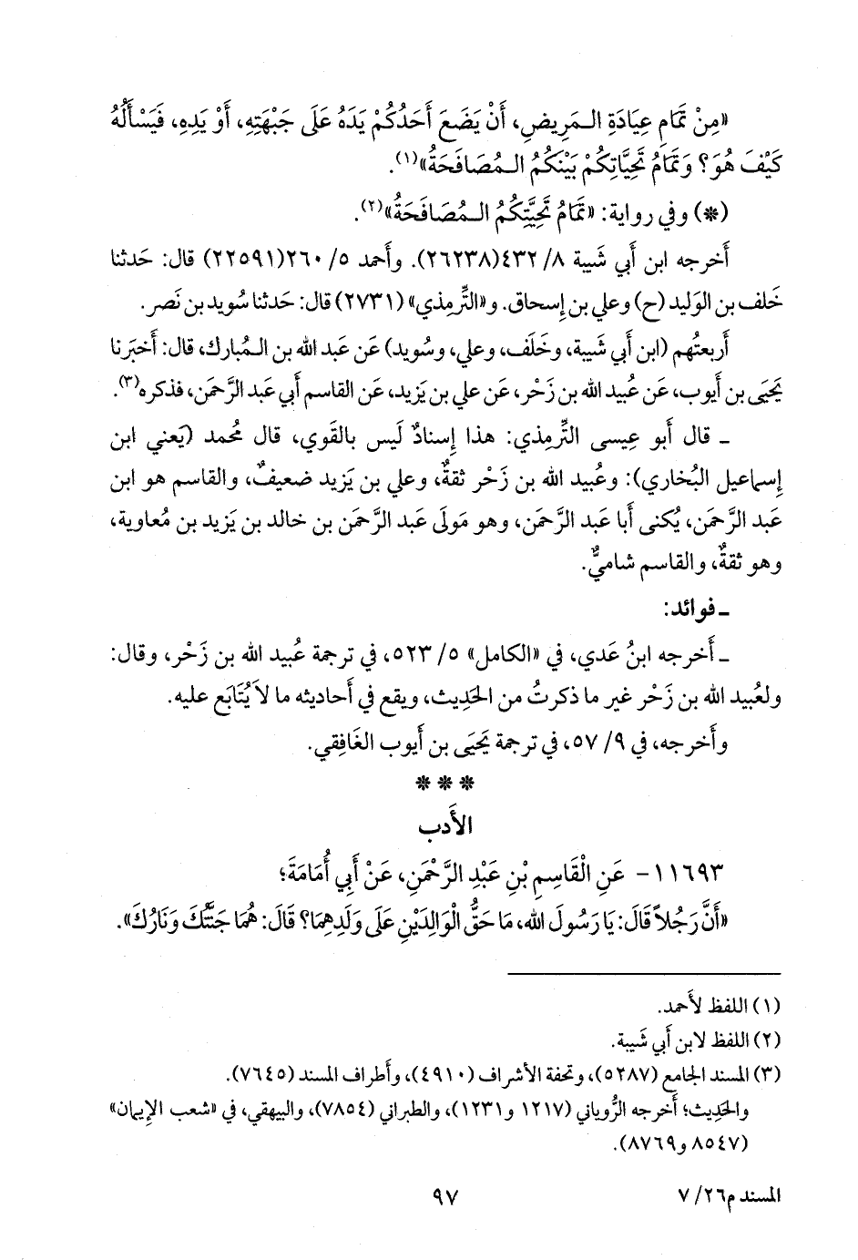 (¬١) المسند الجامع (٥٣٠٣)، وتحفة الأشراف (٤٩٢٠).