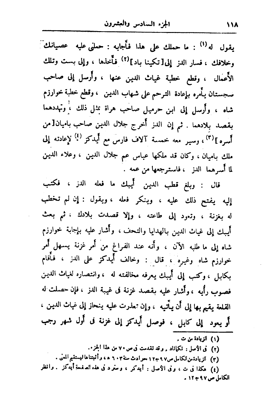 قال: وبلغ قطب الدين أيبك ما فعله الدز، فكتب إليه يفتح ذلك عليه، وينكر فعله، ويقول: إن لم تخطب له بغزنة، وتعود إلى طاعته، وإلا قصدت بلادك، ثم بعث أيبك إلى غياث الدين بالهدايا والتحف، وأشار عليه بإجابة خوارزم شاه إلى ما طلبه الآن، وأنه عند الفراغ من أمر غزنة يسهل أمر خوارزم شاه وغيره، قال: وخالف أيدكز على الدز، فأقام بكابل، وكتب إلى أيبك يعرفه مخالفته له، وانتصاره لغياث الدين فصوب رأيه، وأشار عليه بقصد غزنة في غيبة الدز، فإن حصلت له القلعة يقيم بها إلى أن يأتيه، وإن تعذرت عليه ينحاز إلى غياث الدين، أو يعود إلى كابل، فوصل أيدكز إلى غزنة في أول شهر رجب