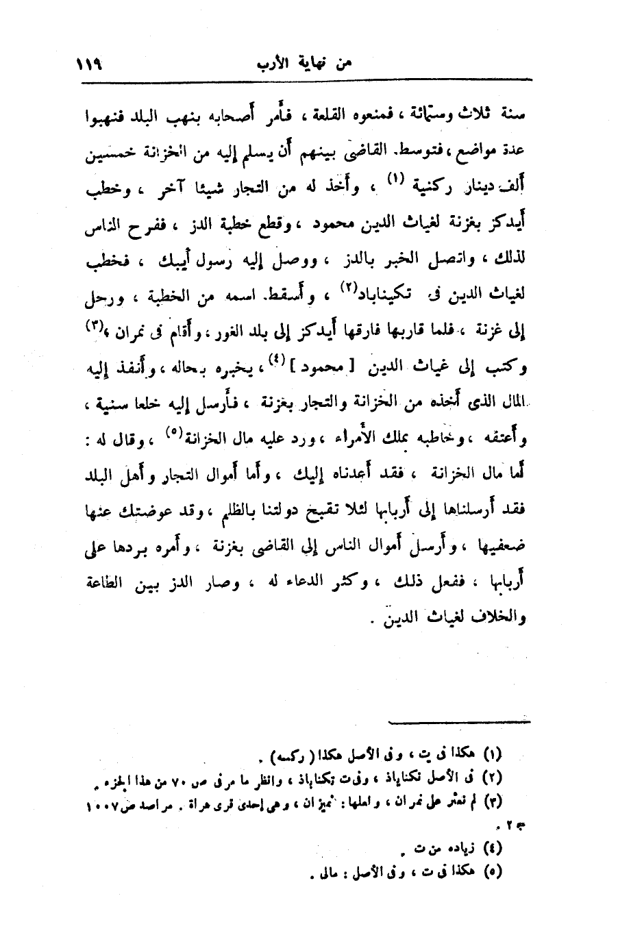 سنة ثلاث وستمائة، فمنعوه القلعة، فأمر أصحابه بنهب البلد فنهبوا عدة مواضع، فتوسط القاضى بينهم أن يسلم إليه من الخزانة خمسين ألف دينار ركنية «1» ، وأخذ له من التجار شيئا آخر، وخطب أيدكز بغزنة لغياث الدين محمود، وقطع خطبة الدز، ففرح الناس لذلك، واتصل الخبر بالدز، ووصل إليه رسول أيبك، فخطب لغياث الدين في تكيناباد «2» ، وأسقط اسمه من الخطبة، ورحل إلى غزنة، فلما قاربها فارقها أيدكز إلى بلد الغور، وأقام في نمران، «3» وكتب إلى غياث الدين [محمود] »