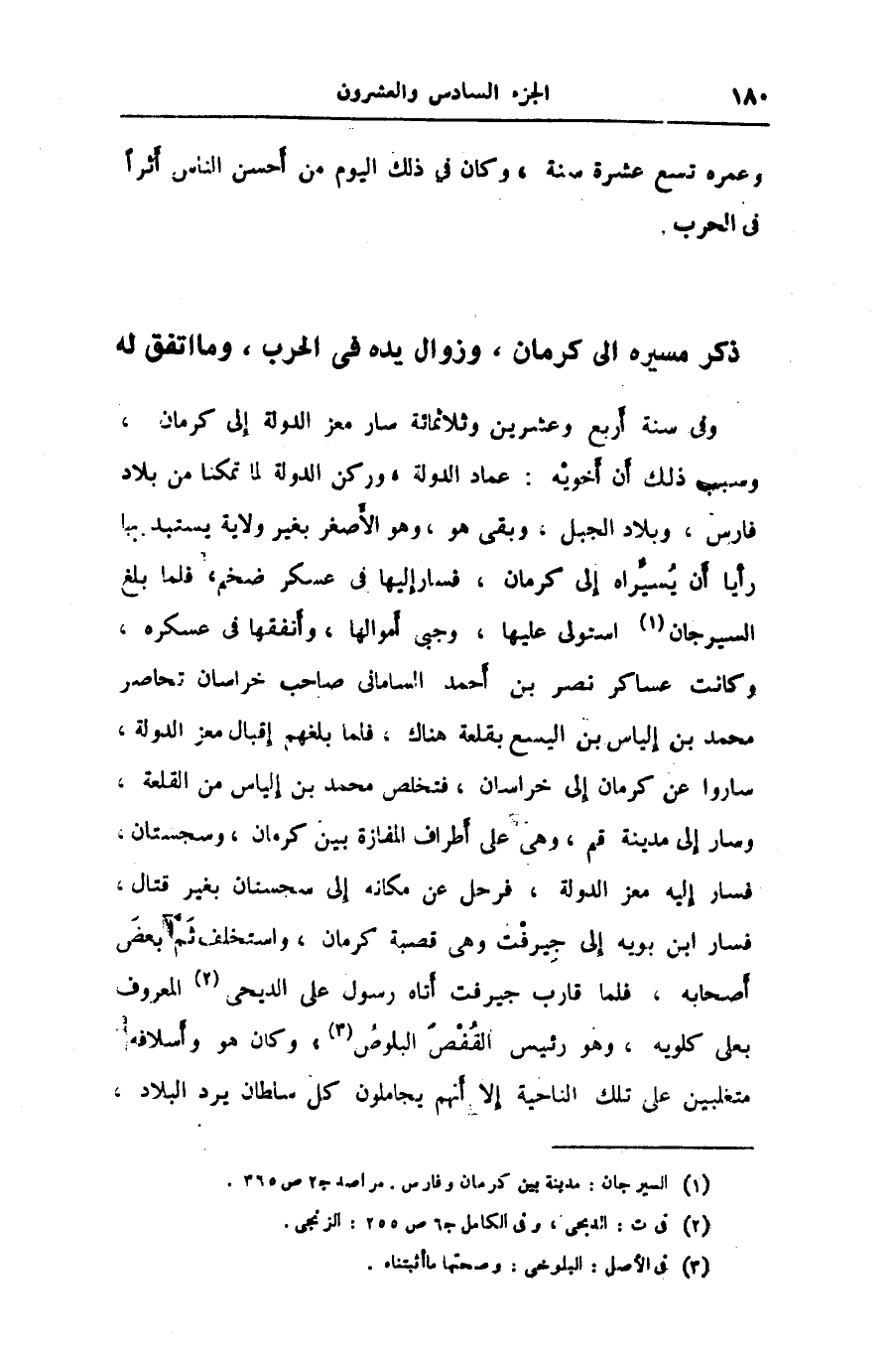 ذكر مسيره الى كرمان، وزوال يده في الحرب، وما اتفق له
