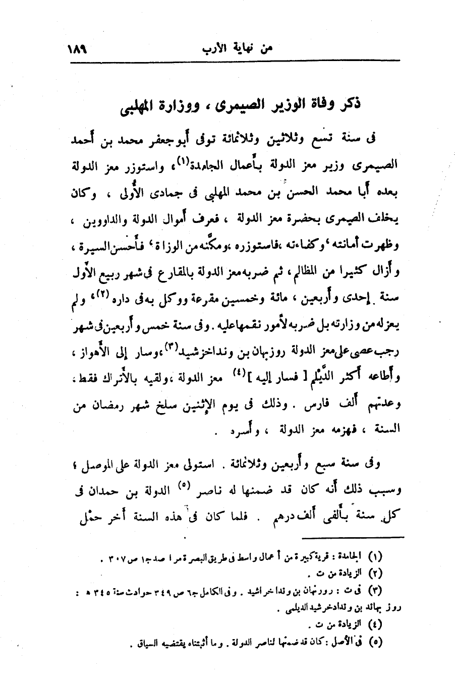 ذكر وفاة الوزير الصيمرى، ووزارة المهلبى