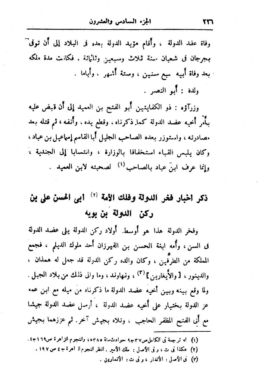 ذكر أخبار فخر الدولة وفلك الأمة «2» أبى الحسن على بن ركن الدولة بن بويه