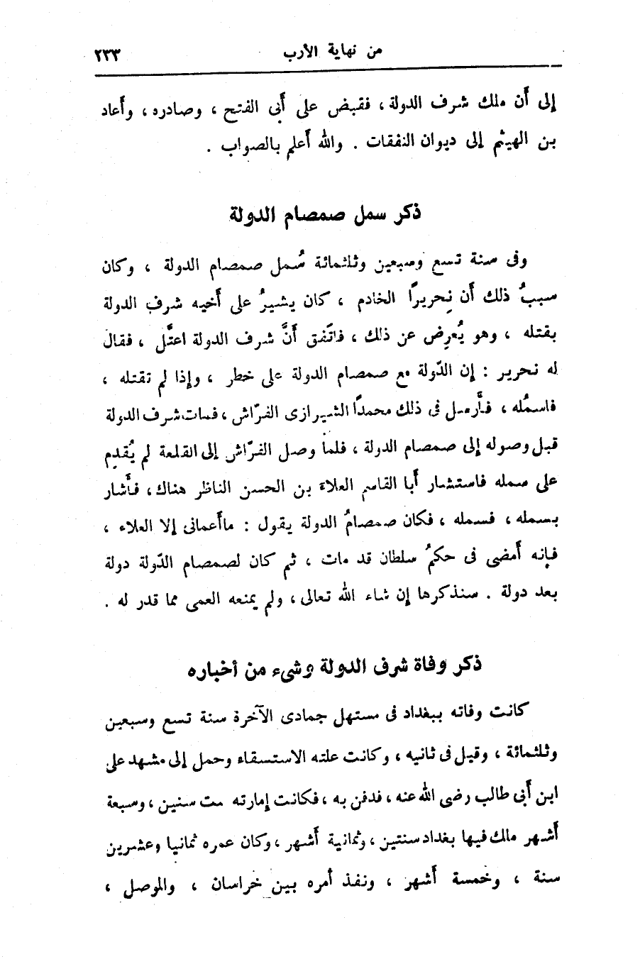 إلى أن ملك شرف الدولة، فقبض على أبى الفتح، وصادره، وأعاد بن الهيثم إلى ديوان النفقات. والله أعلم بالصواب.