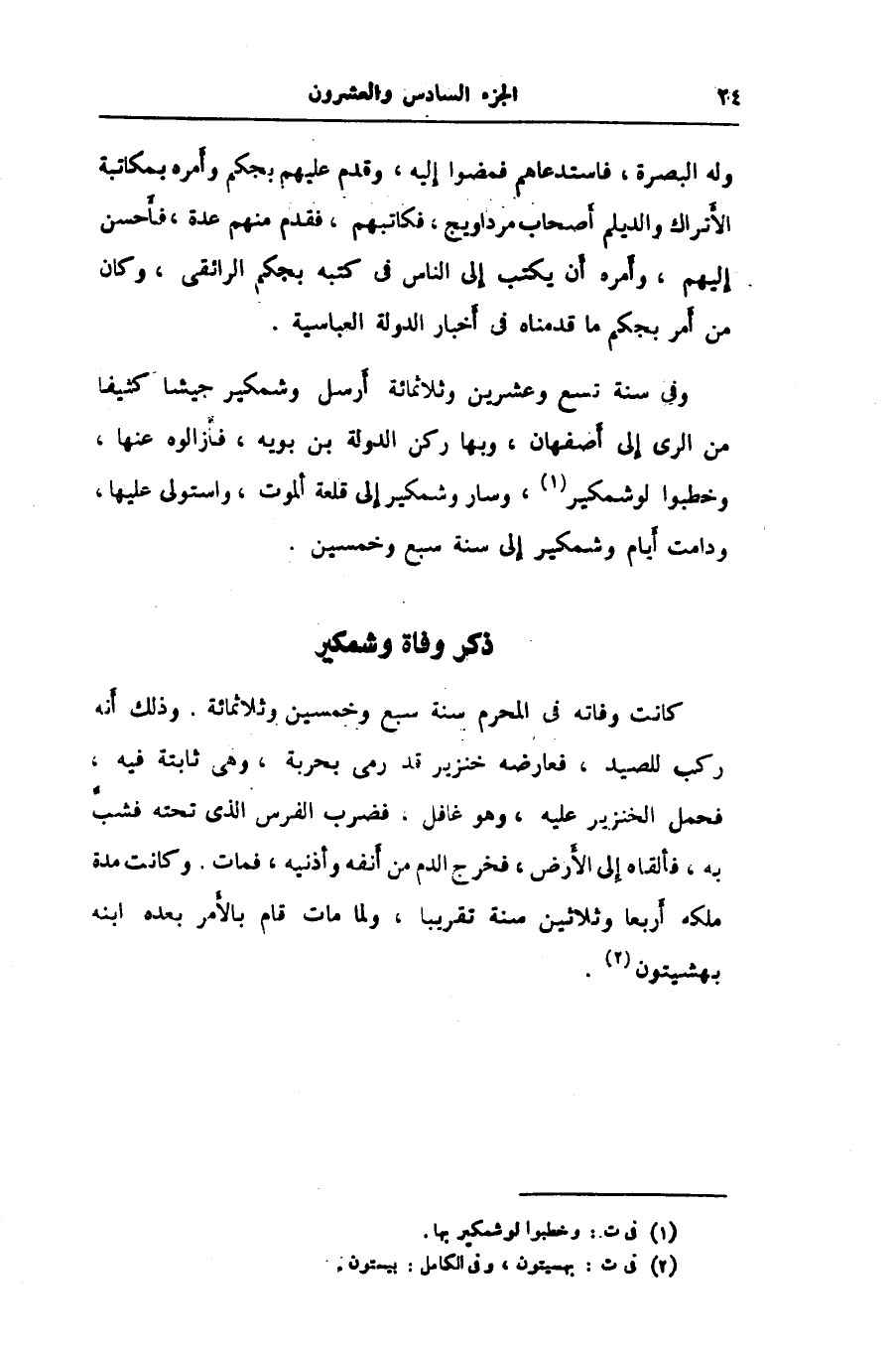 وفي سنة تسع وعشرين وثلاثمائة أرسل وشمكير جيشا كثيفا من الرى إلى أصفهان، وبها ركن الدولة بن بويه، فأزالوه عنها، وخطبوا لوشمكير «1» ، وسار وشمكير إلى قلعة ألموت، واستولى عليها، ودامت أيام وشمكير إلى سنة سبع وخمسين.