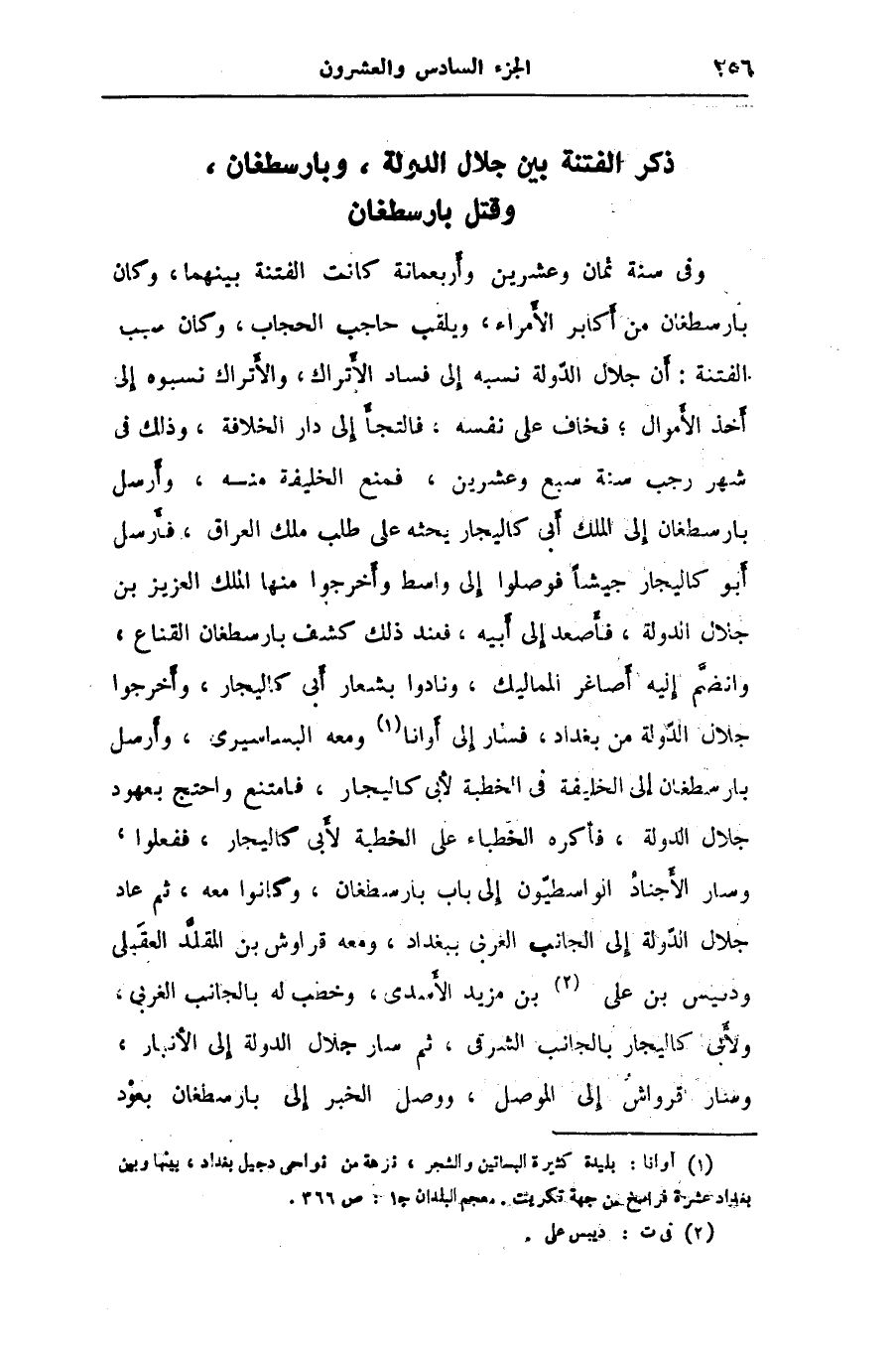 ذكر الفتنة بين جلال الدولة، وبارسطغان، وقتل بارسطغان