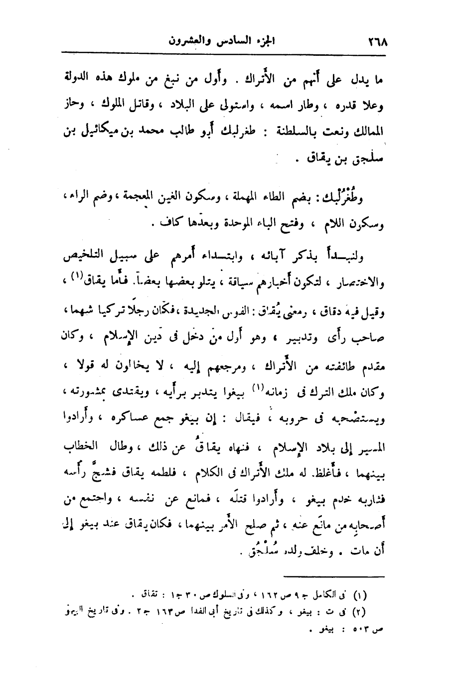 وطغرلبك: بضم الطاء المهملة، وسكون الغين المعجمة، وضم الراء، وسكون اللام، وفتح الباء الموحدة وبعدها كاف.