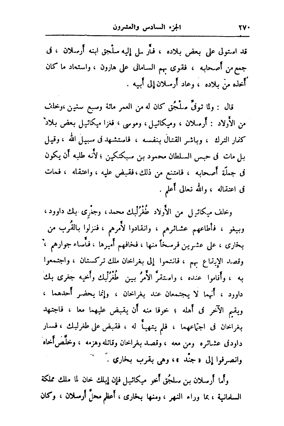 وأما أرسلان بن سلجق أخو ميكائيل فإن إيلك خان لما ملك مملكة السامانية، بما وراء النهر، ومنها بخارى، أعظم محلّ أرسلان، وكان