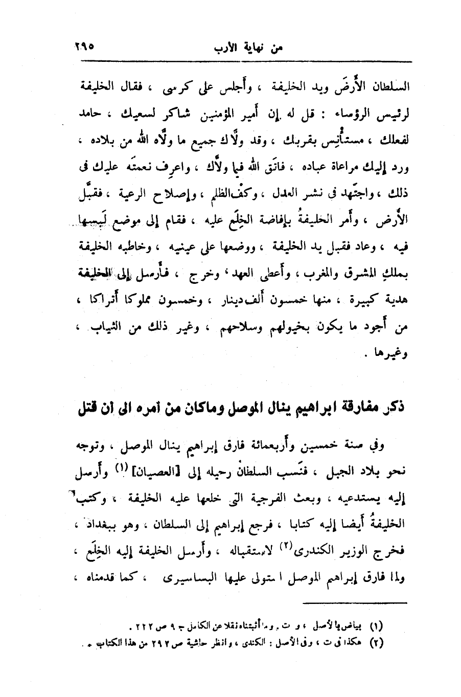 ذكر مفارقة ابراهيم ينال الموصل وما كان من أمره الى أن قتل