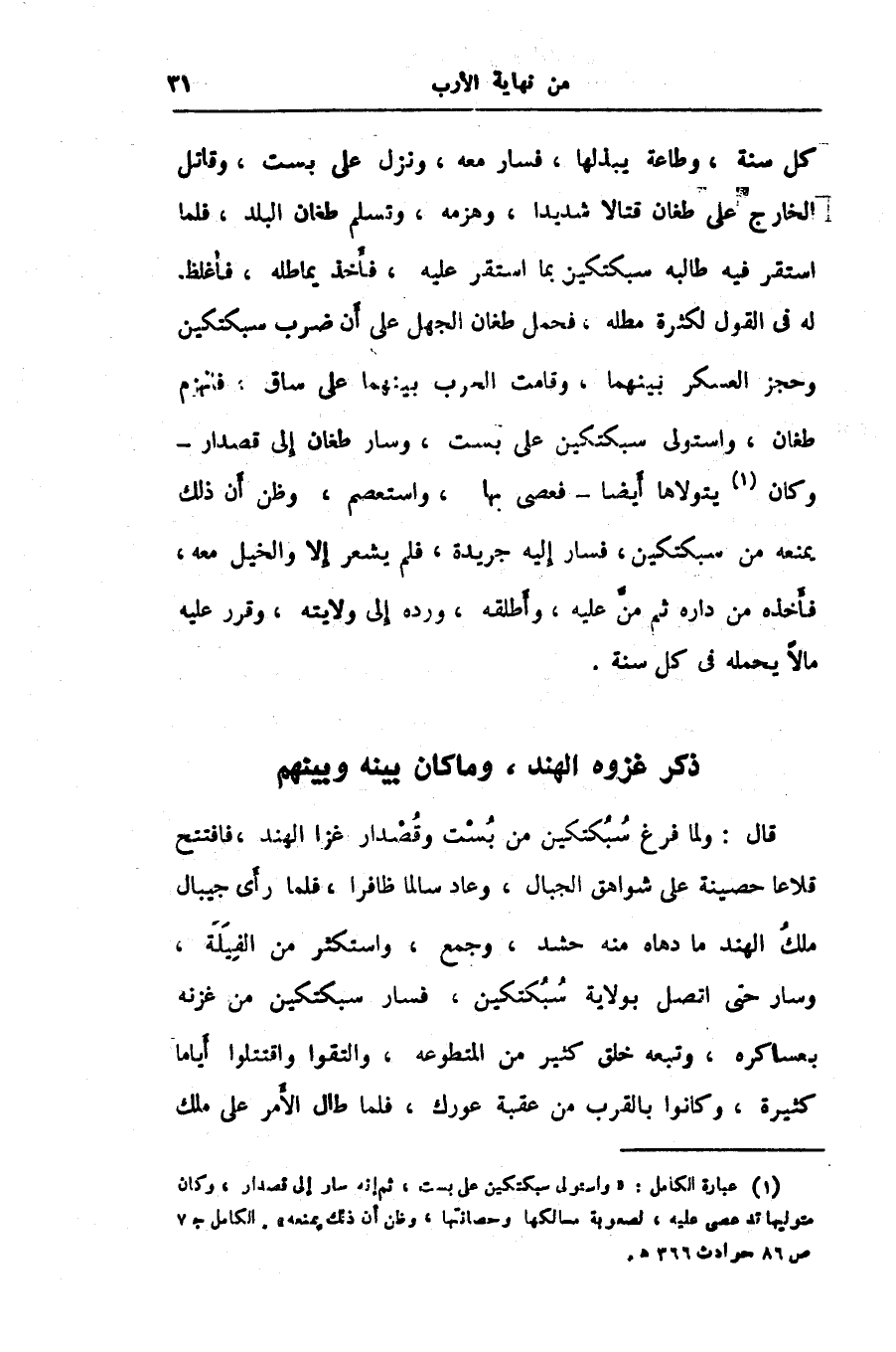 له في القول لكثرة مطله، فحمل طغان الجهل على أن ضرب سبكتكين وحجز العسكر بينهما، وقامت الحرب بينهما على ساق، فانهزم طغان، واستولى سبكتكين على بست، وسار طغان إلى قصدار- وكان «1» يتولاها أيضا- فعصى بها، واستعصم، وظن أن ذلك يمنعه من سبكتكين، فسار إليه جريدة، فلم يشعر إلا والخيل معه، فأخذه من داره ثم منّ عليه، وأطلقه، ورده إلى ولايته، وقرر عليه مالا يحمله في كل سنة.