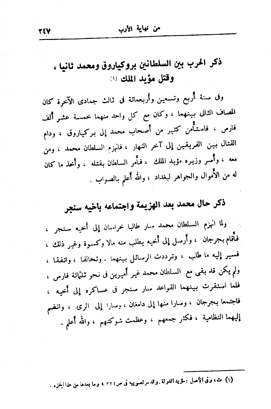 ذكر الحرب بين السلطانين بروكياروق ومحمد ثانيا، وقتل مؤيد الملك «1»