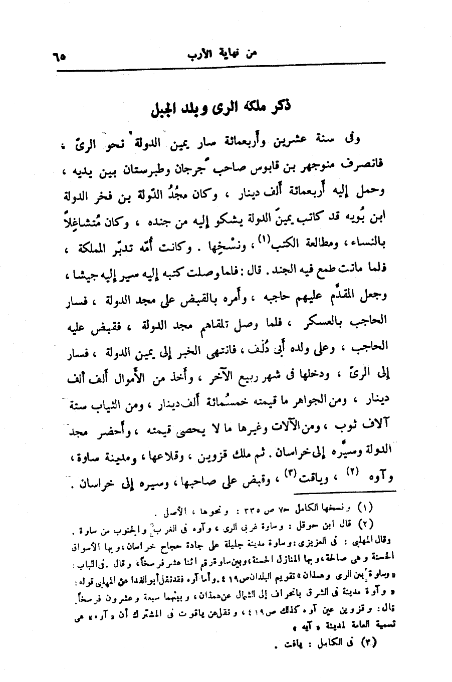ذكر ملكة الرى وبلد الجبل