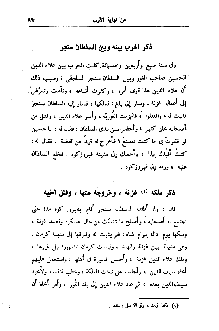 وهى مدينة بين غزنة والهند، وليست كرمان المشهورة بل غيرها، وملك علاء الدين غزنة، وأحسن السيرة في أهلها، واستعمل عليهم أخاه سيف الدين، وأجلسه على تخت المملكة، وخطب لنفسه ولأخيه سيف الدين بعده، ثم عاد علاء الدين إلى بلد الغور، وأمر أخاه أن