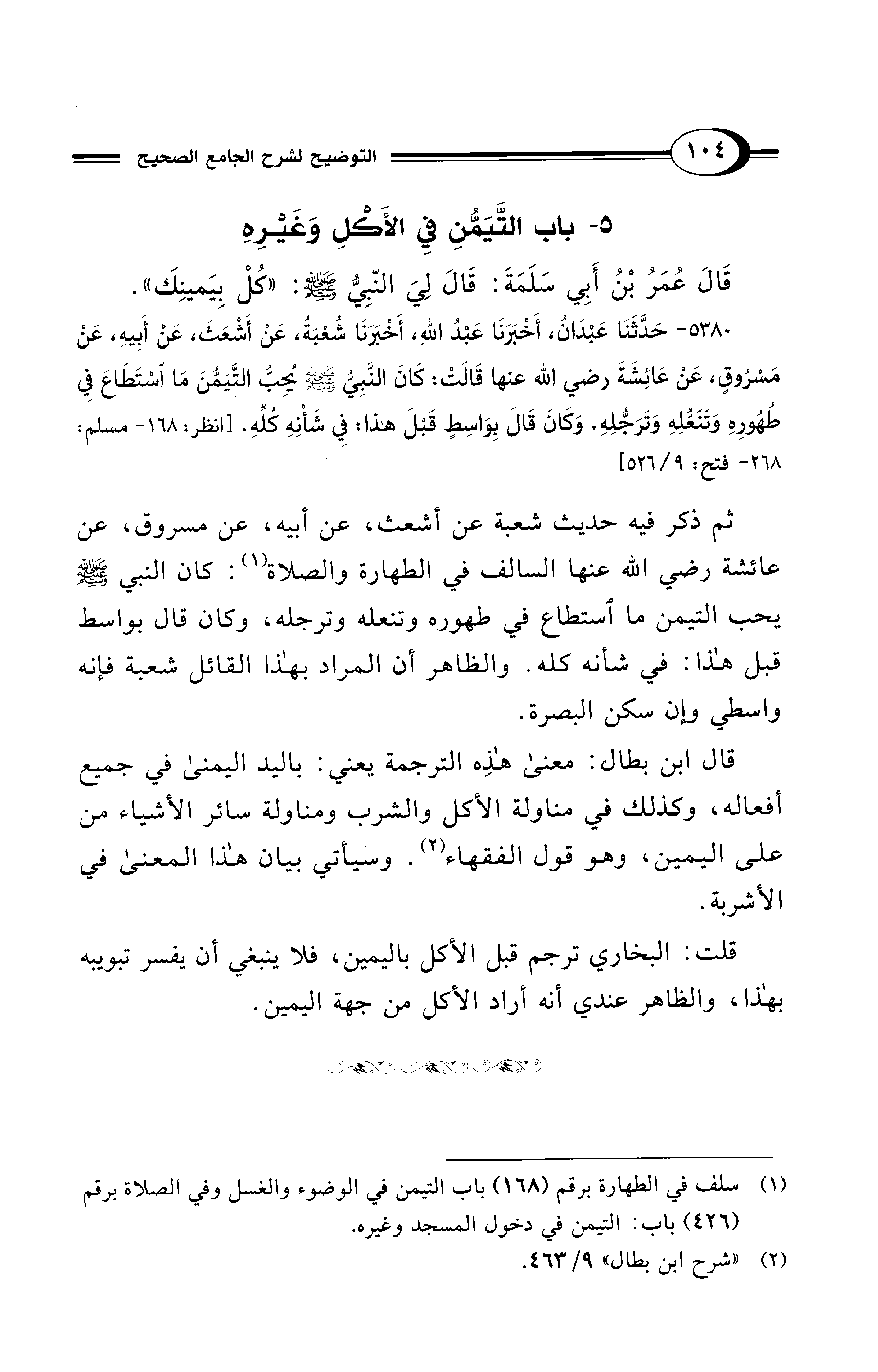 5 - باب التَّيَمُّنِ فِي الأَكْلِ وَغَيْرِهِ
