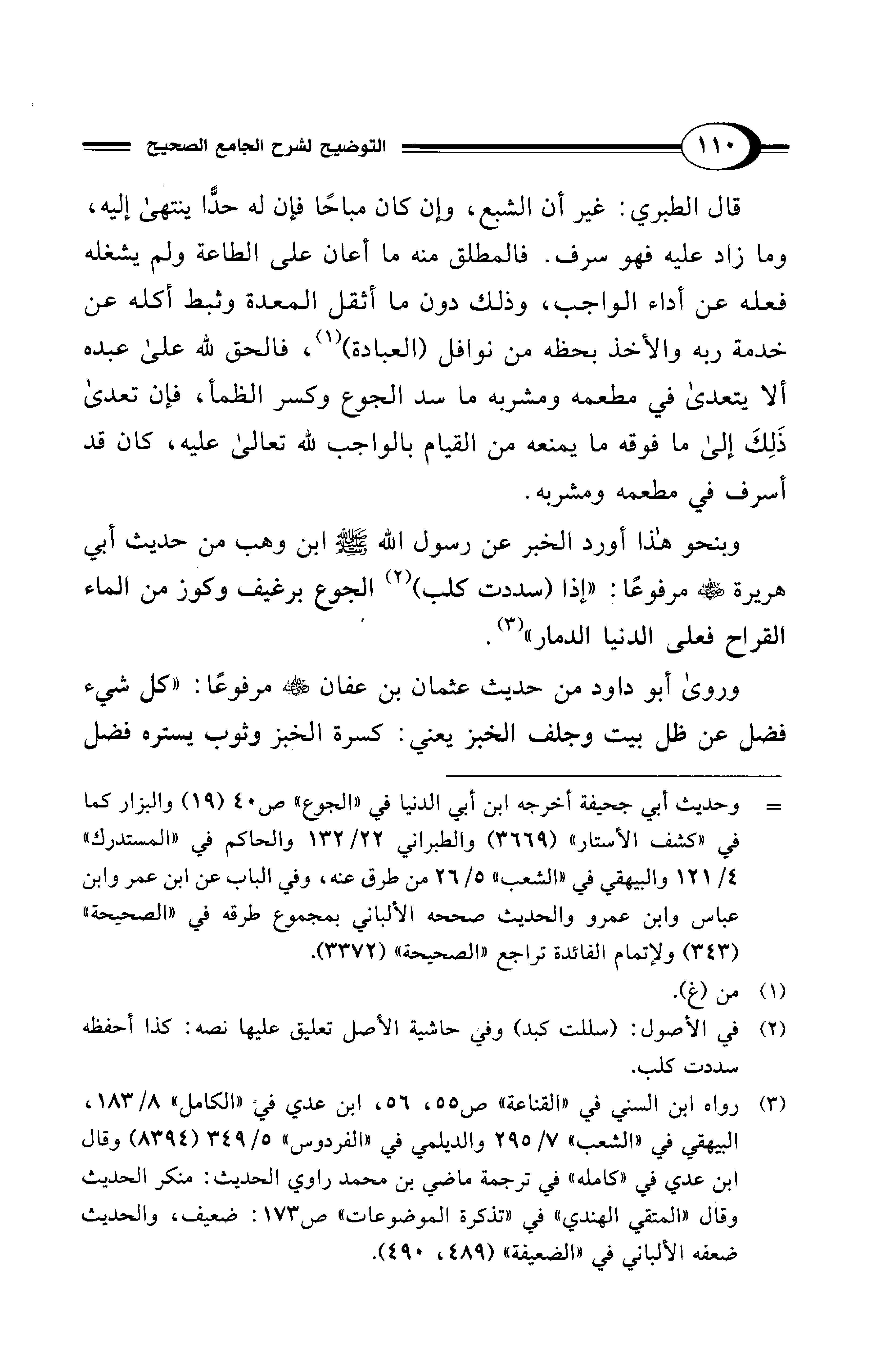 = وحديث أبي جحيفة أخرجه ابن أبي الدنيا في "الجوع" ص 40 (19) والبزار كما في "كشف الأستار" (3669) والطبراني 22/ 132 والحاكم في "المستدرك" 4/ 121 والبيهقي في "الشعب" 5/ 26 من طرق عنه، وفي الباب عن ابن عمر وابن عباس وابن عمرو والحديث صححه الألباني بمجموع طرقه في "الصحيحة" (343) ولإتمام الفائدة تراجع "الصحيحة" (3372).