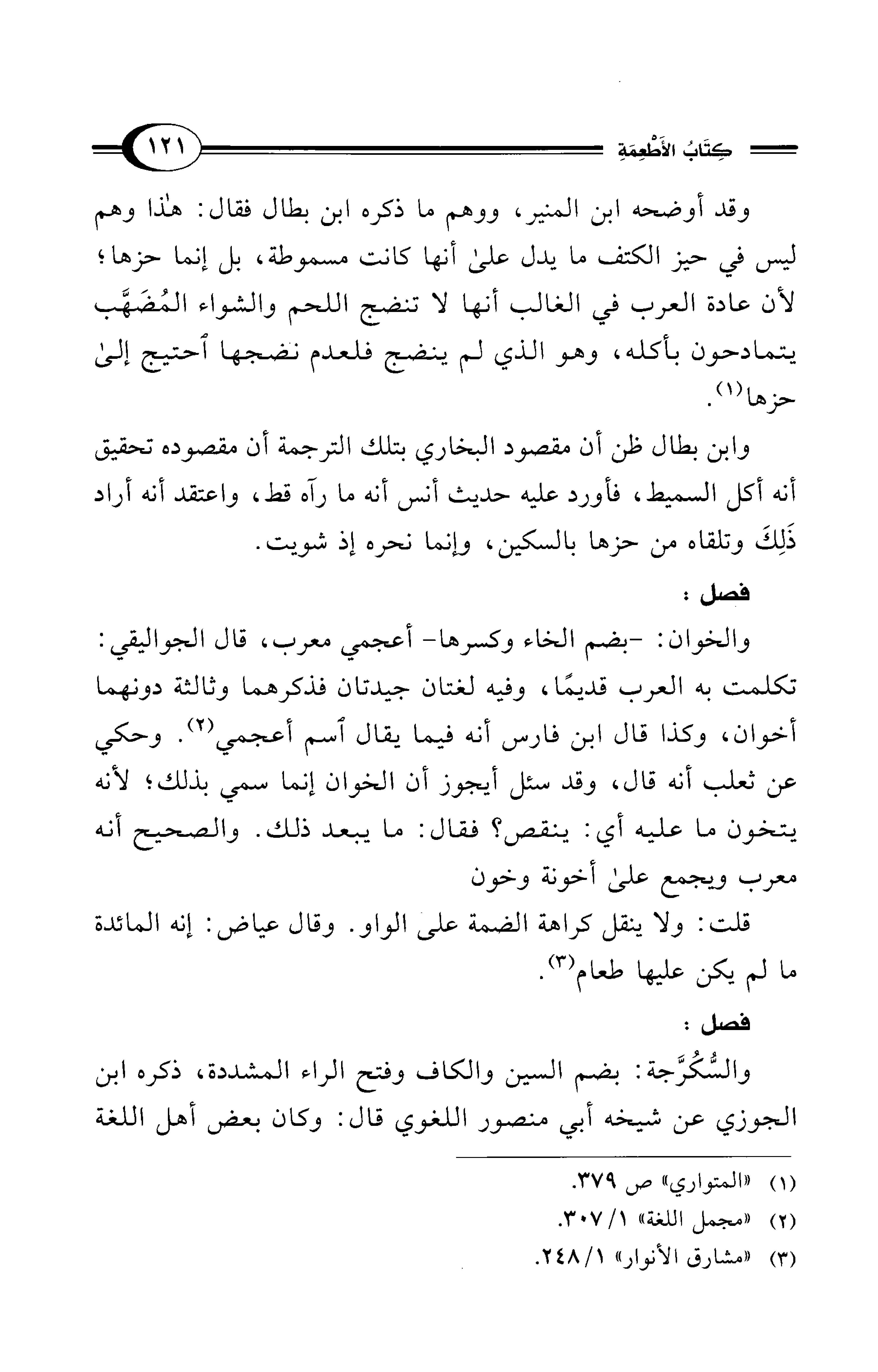 قلت: ولا ينقل كراهة الضمة على الواو. وقال عياض: إنه المائدة ما لم يكن عليها طعام (¬3).