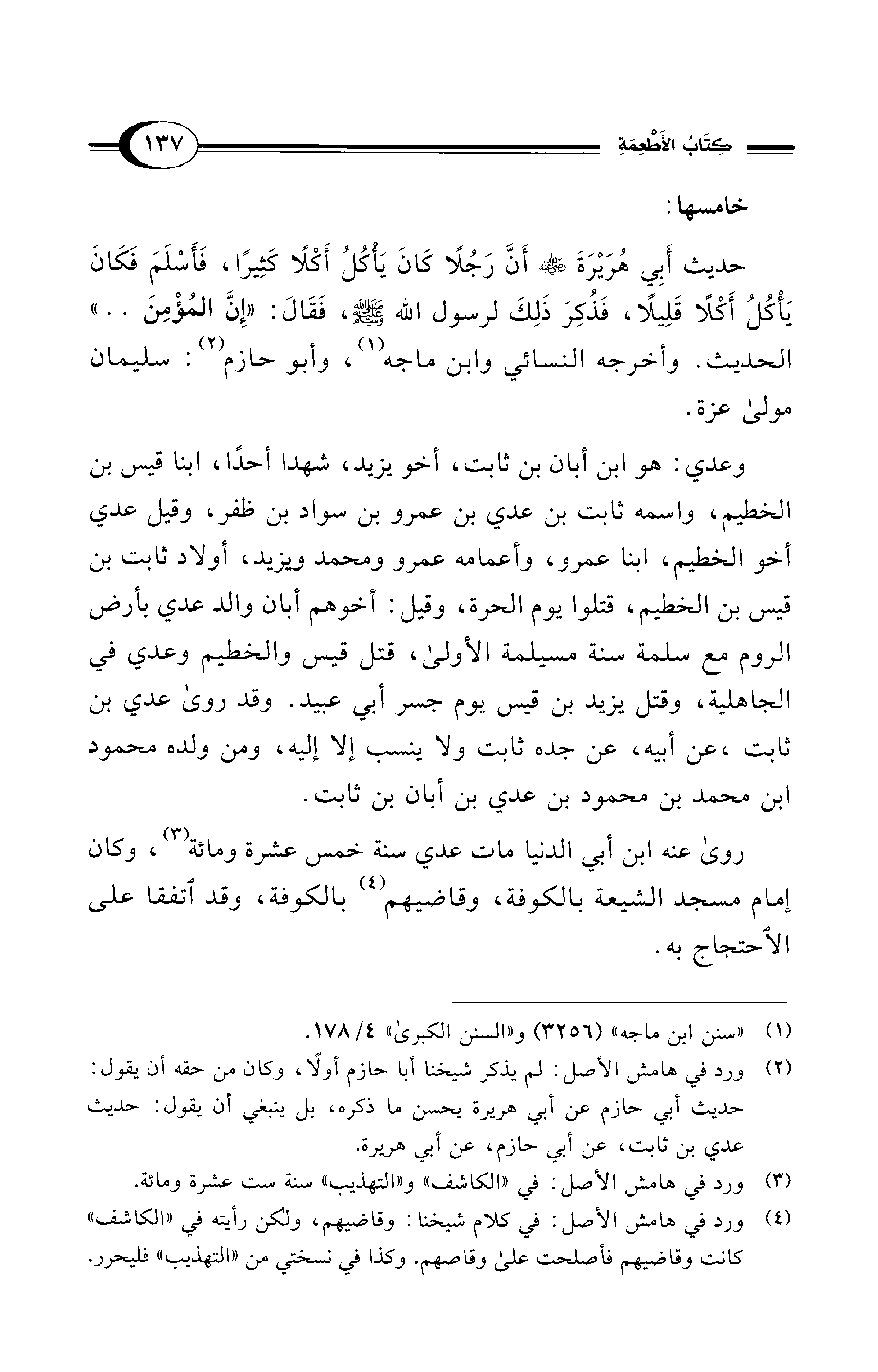 (¬2) ورد في هامش الأصل: لم يذكر شيخنا أبا حازم أولاً، وكان من حقه أن يقول: حديث أبي حازم عن أبي هريرة يحسن ما ذكره، بل ينبغي أن يقول: حديث عدي بن ثابت، عن أبي حازم، عن أبي هريرة.