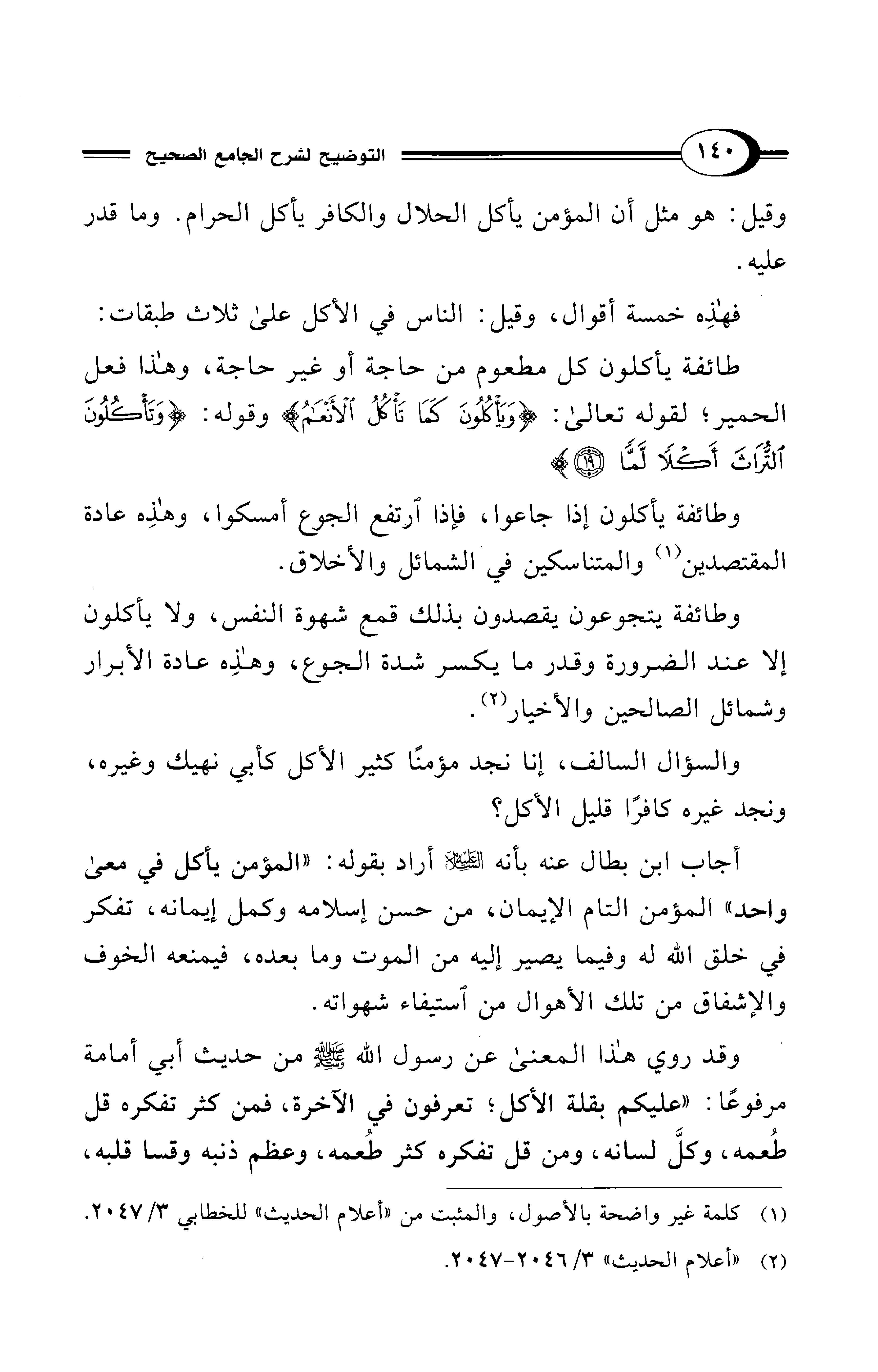 فهذِه خمسة أقوال، وقيل: الناس في الأكل على ثلاث طبقات:
