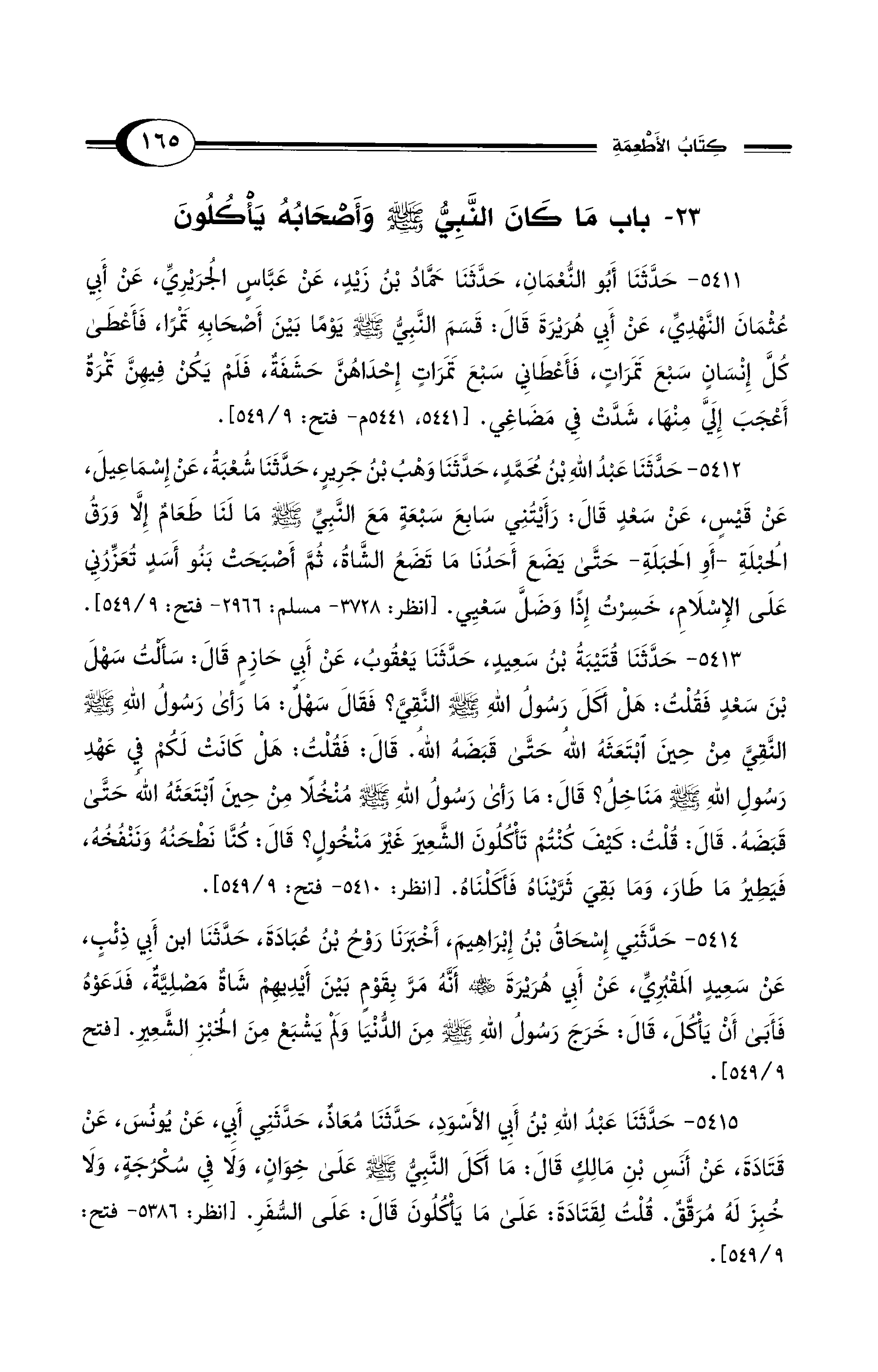 23 - باب مَا كَانَ النَّبِيُّ - صلى الله عليه وسلم - وَأَصْحَابُهُ يَأْكُلُونَ