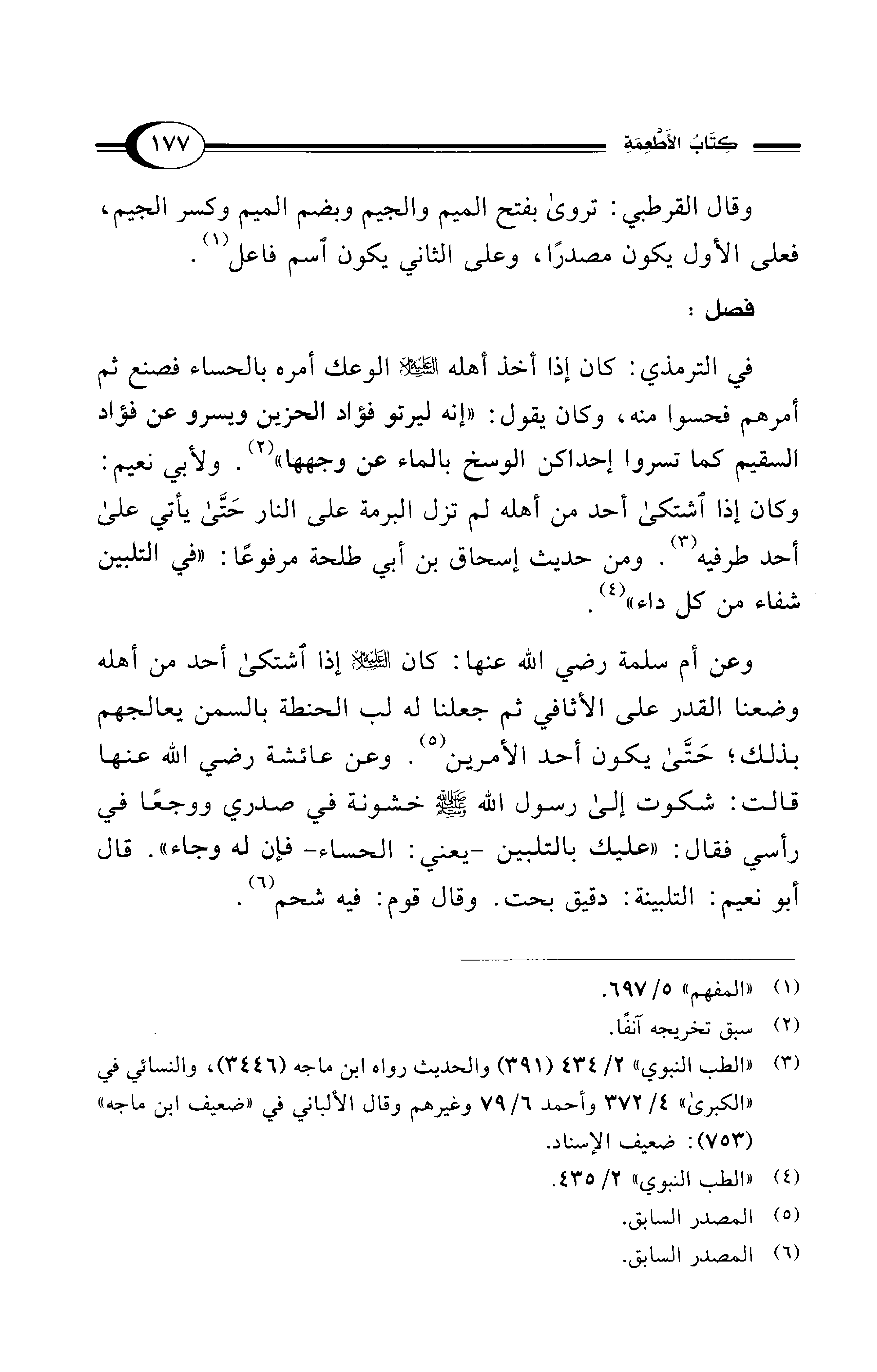 (¬3) "الطب النبوي" 2/ 434 (391) والحديث رواه ابن ماجه (3446)، والنسائي في "الكبرى" 4/ 372 وأحمد 6/ 79 وغيرهم وقال الألباني في "ضعيف ابن ماجه" (753): ضعيف الإسناد.