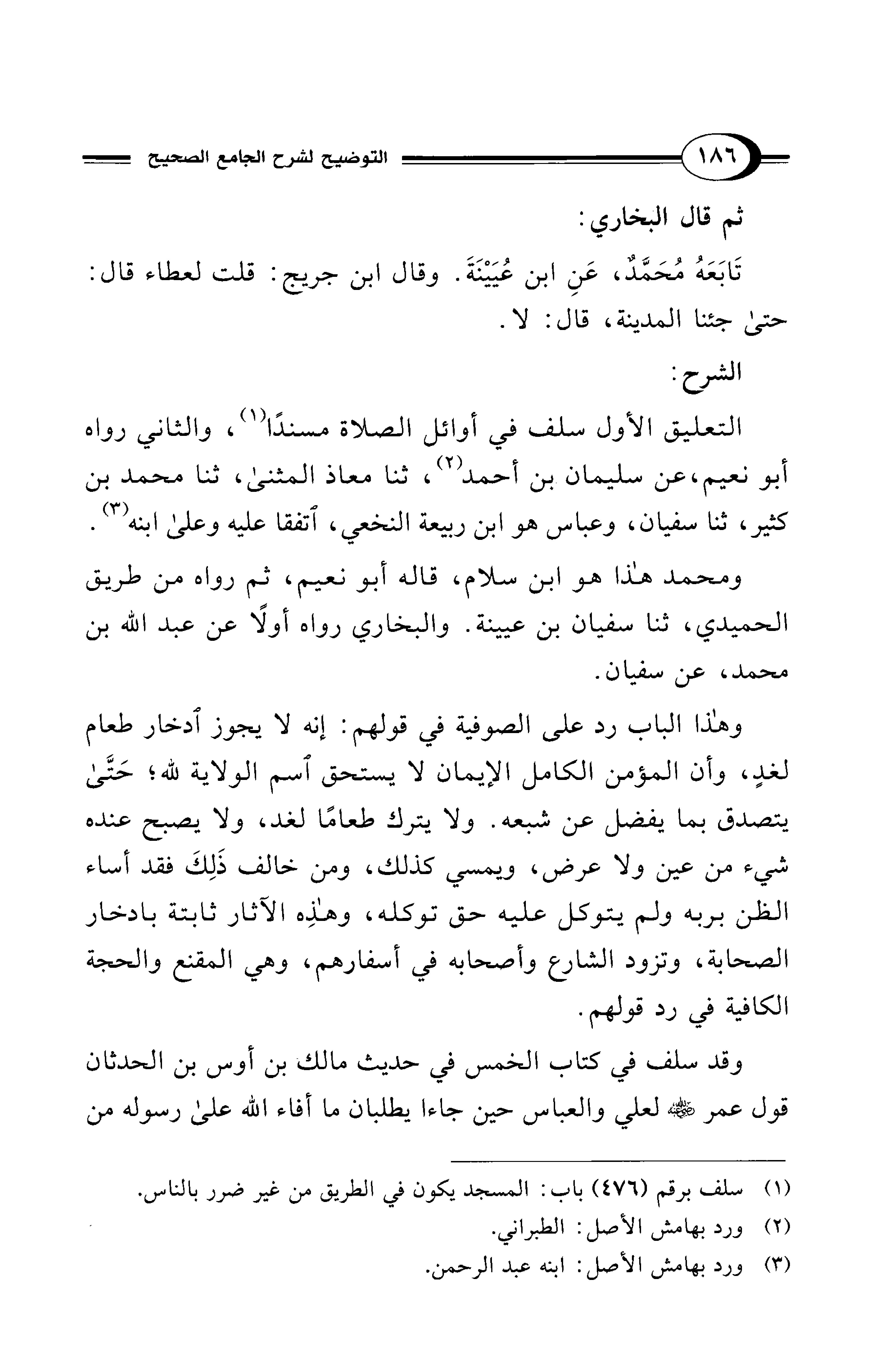 تَابَعَهُ مُحَمَّدٌ، عَنِ ابن عُيَيْنَةَ. وقال ابن جريج: قلت لعطاء قال: حتى جئنا المدينة، قال: لا.