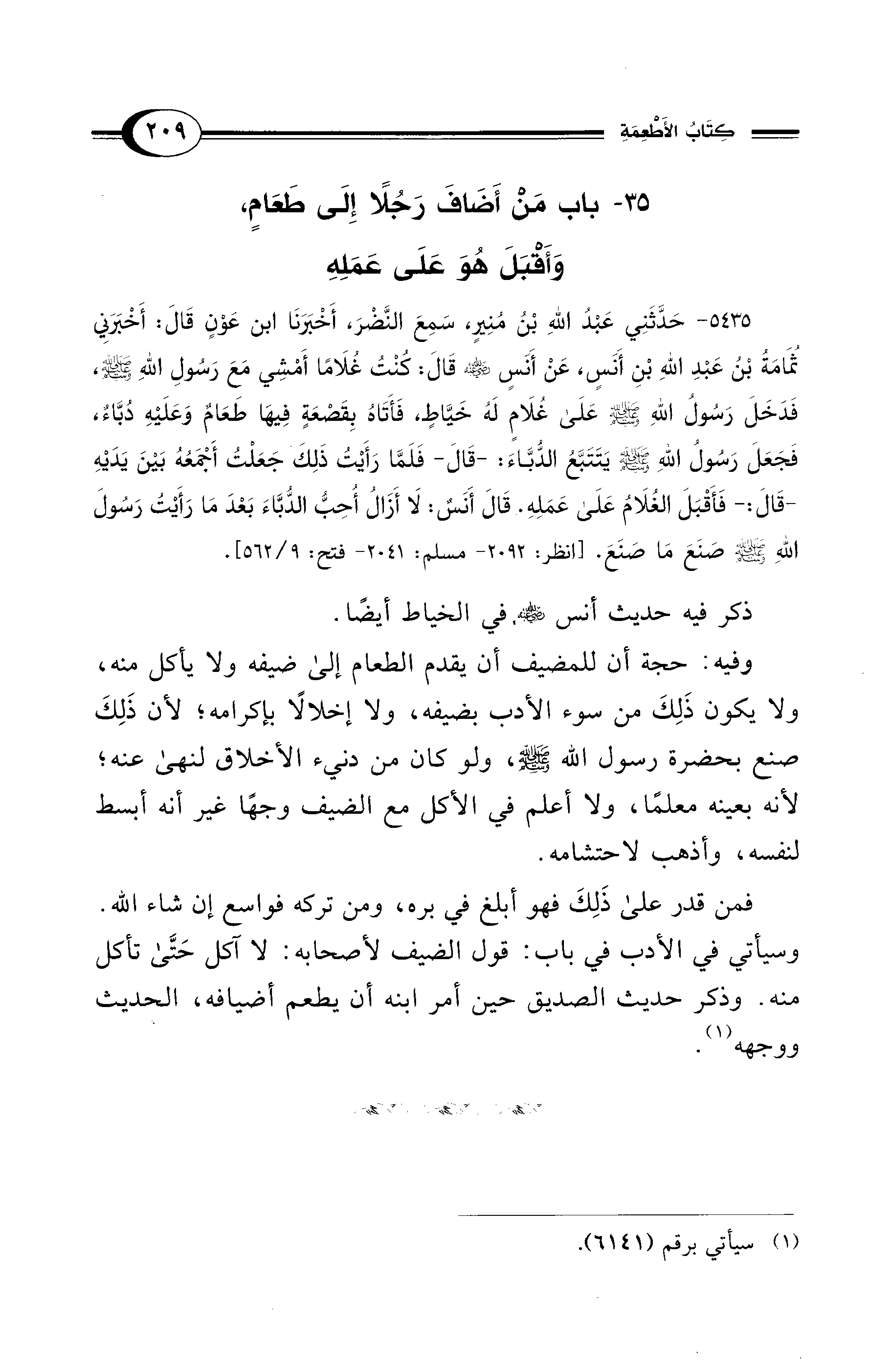 35 - باب مَنْ أَضَافَ رَجُلاً إِلَى طَعَامٍ، وَأَقْبَلَ هُوَ عَلَى عَمَلِهِ