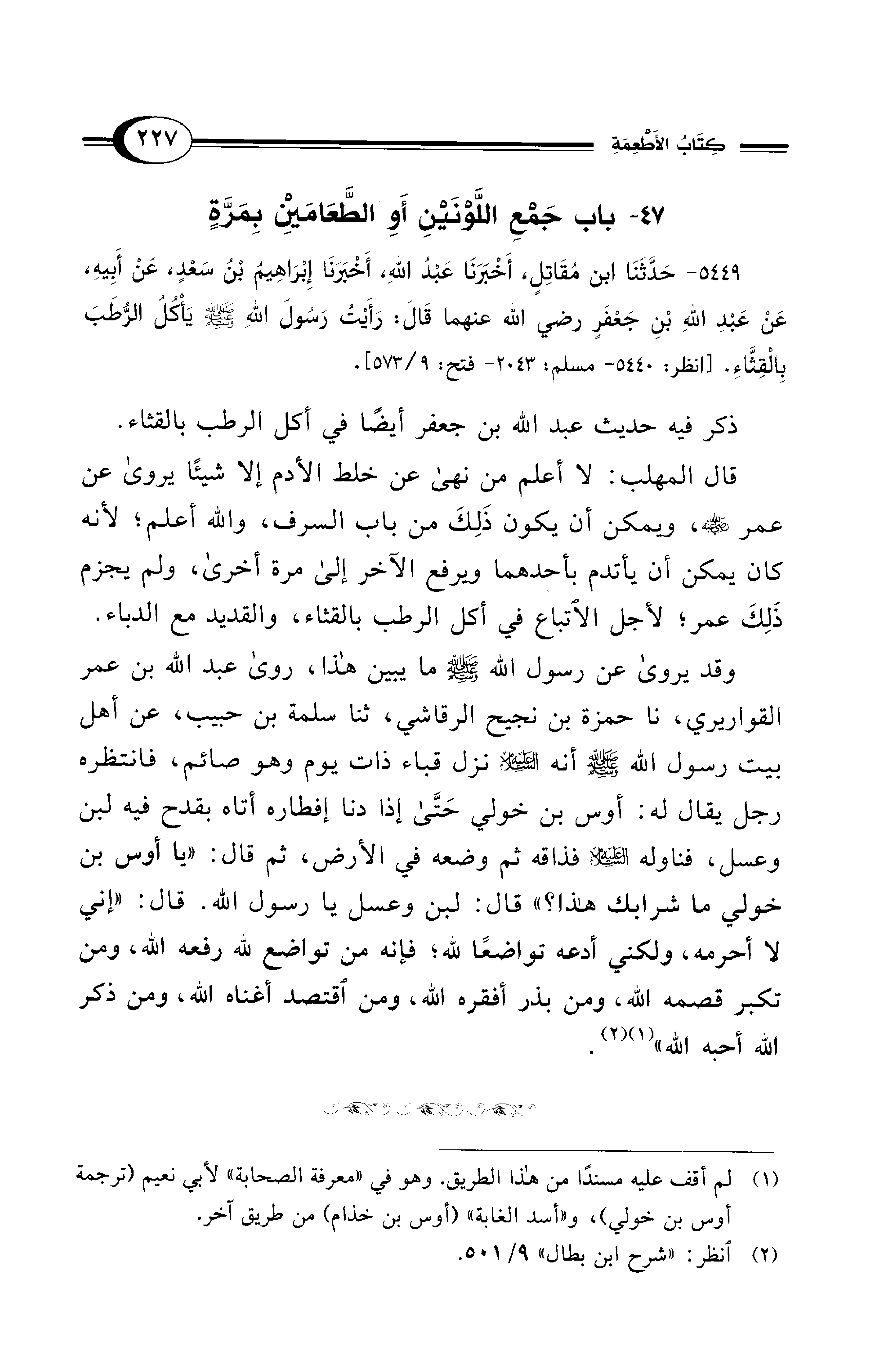 47 - باب جَمْعِ اللَّوْنَيْنِ أَوِ الطَّعَامَيْنِ بِمَرَّةٍ