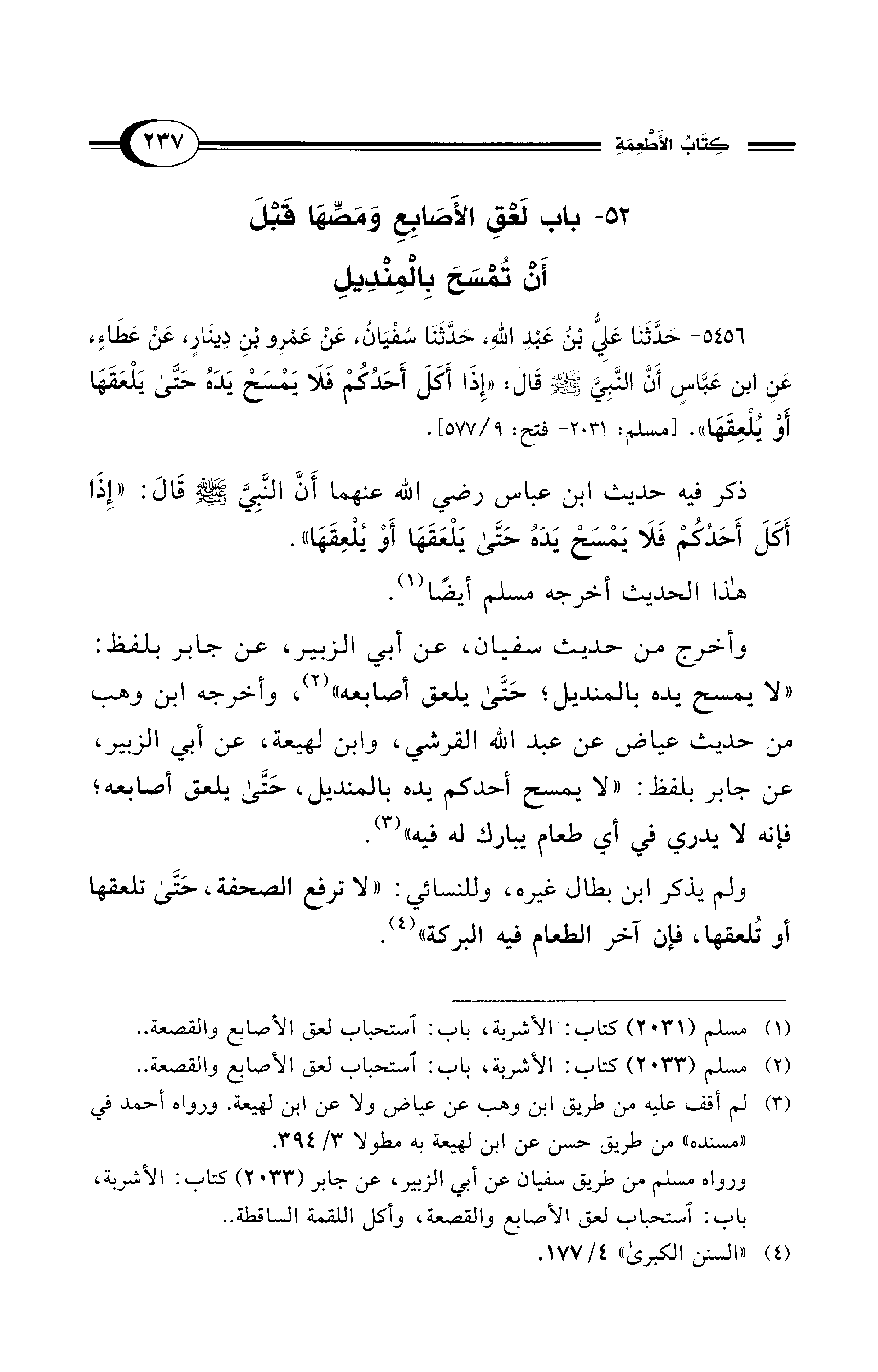 52 - باب لَعْقِ الأَصَابِعِ وَمَصِّهَا قَبْلَ أَنْ تُمْسَحَ بِالْمِنْدِيلِ