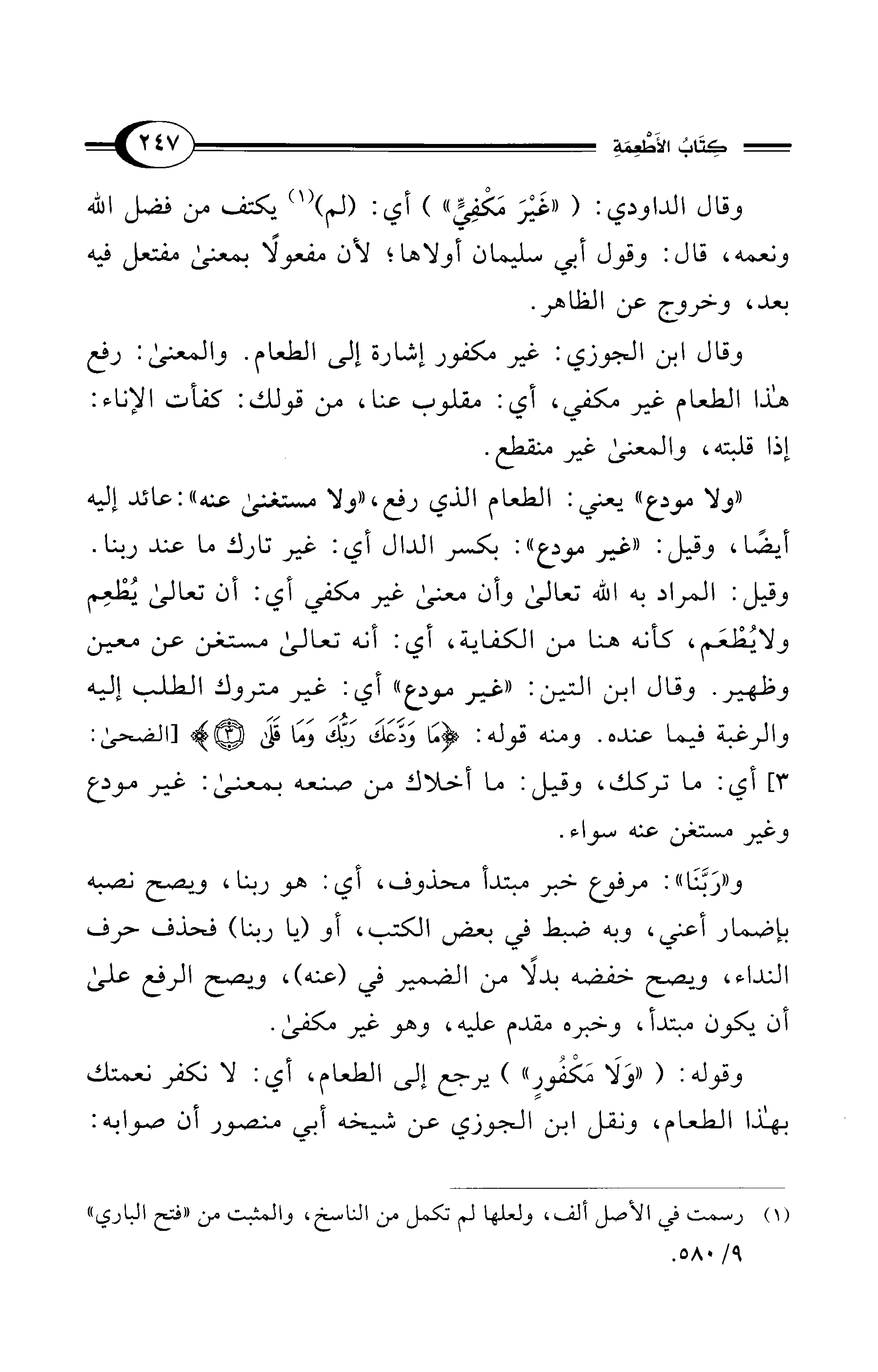 وقوله: ("وَلَا مَكْفُورٍ") يرجع إلى الطعام، أي: لا نكفر نعمتك بهذا الطعام، ونقل ابن الجوزي عن شيخه أبي منصور أن صوابه: