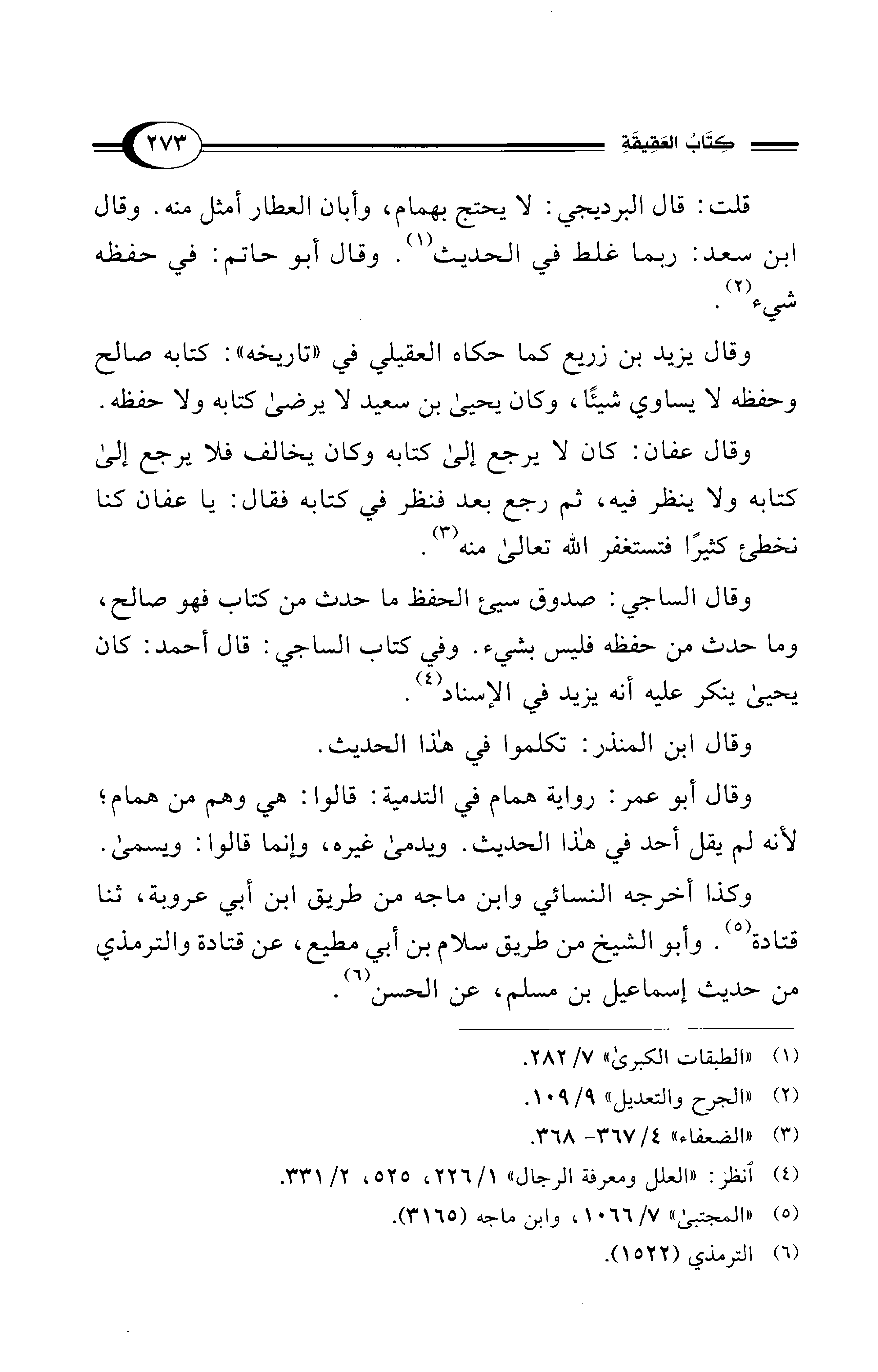 قلت: قال البرديجي: لا يحتج بهمام، وأبان العطار أمثل منه. وقال ابن سعد: ربما غلط في الحديث (¬1). وقال أبو حاتم: في حفظه شيء (¬2).