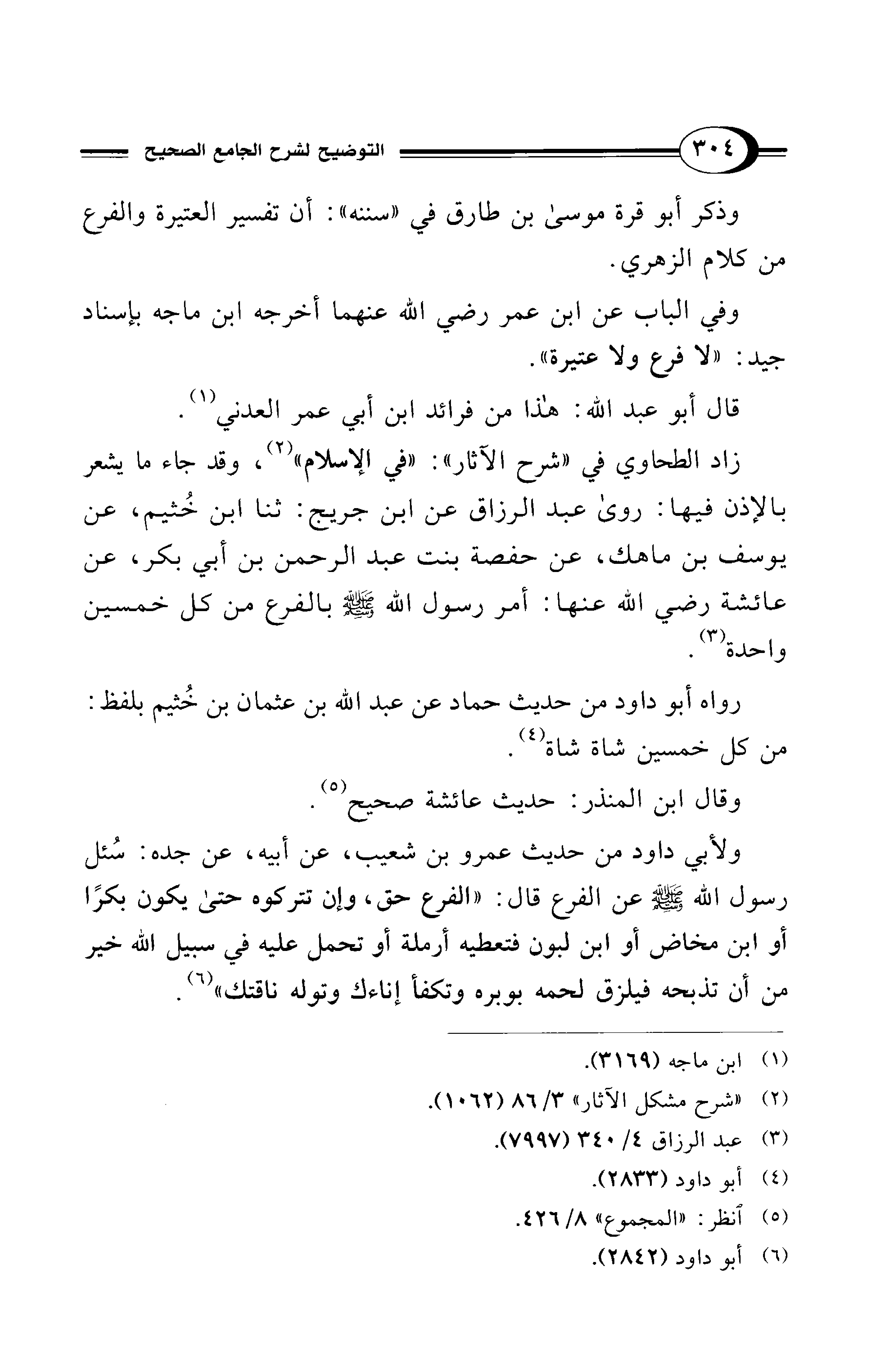 زاد الطحاوي في "شرح الآثار": "في الإسلام" (¬2)، وقد جاء ما يشعر بالإذن فيها: روى عبد الرزاق عن ابن جريج: ثنا ابن خُثيم، عن يوسف بن ماهك، عن حفصة بنت عبد الرحمن بن أبي بكر، عن عائشة - رضي الله عنها -: أمر رسول الله - صلى الله عليه وسلم - بالفرع من كل خمسين واحدة (¬3).
