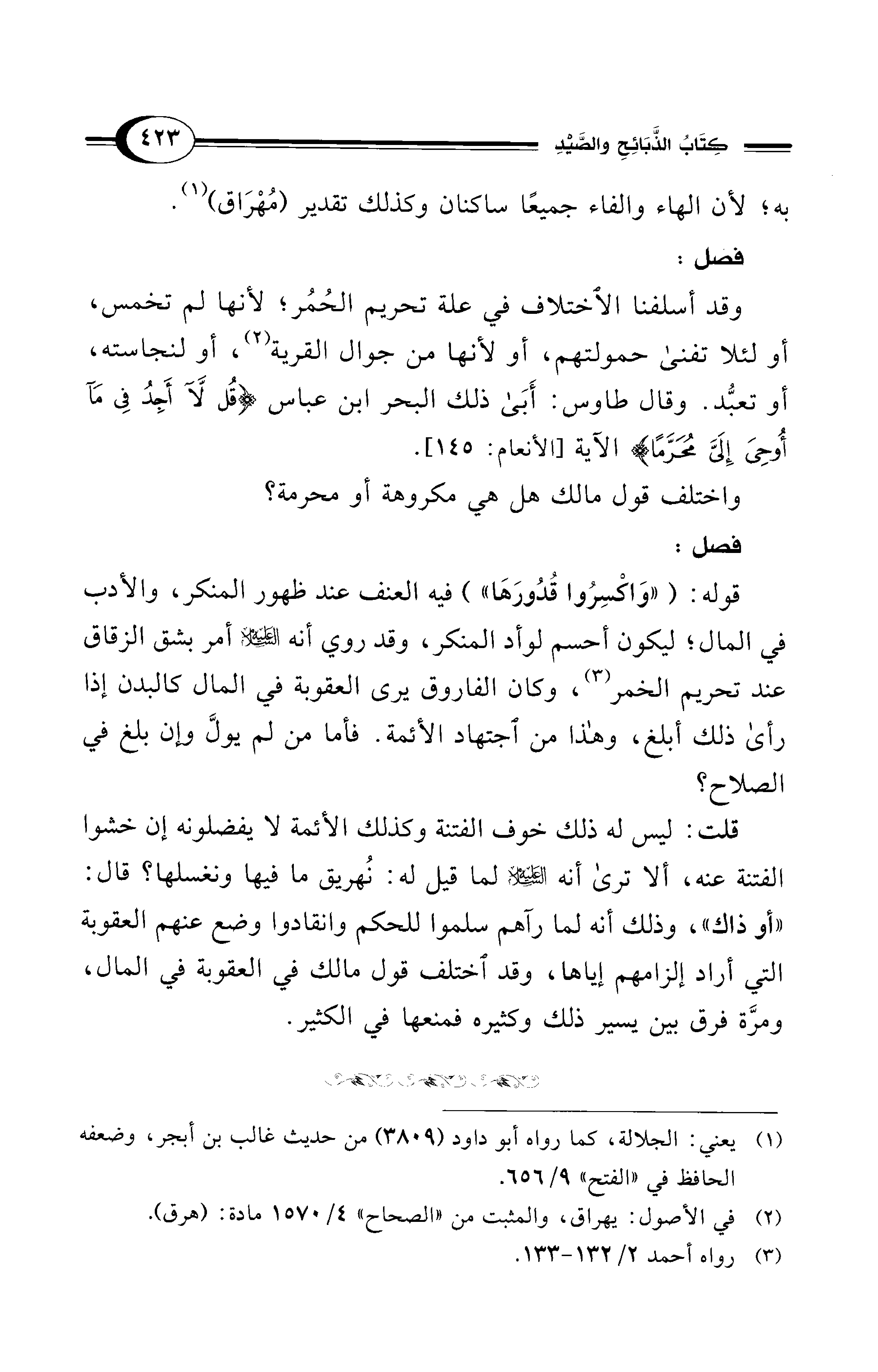 وقد أسلفنا الاختلاف في علة تحريم الحُمُر؛ لأنها لم تخمس، أو لئلا تفنى حمولتهم، أو لأنها من جوال القرية (¬2)، أو لنجاسته، أو تعبُّد. وقال طاوس: أَبَى ذلك البحر ابن عباس {قُلْ لَا أَجِدُ فِي مَا أُوحِيَ إِلَيَّ مُحَرَّمًا} الآية [الأنعام: 145].