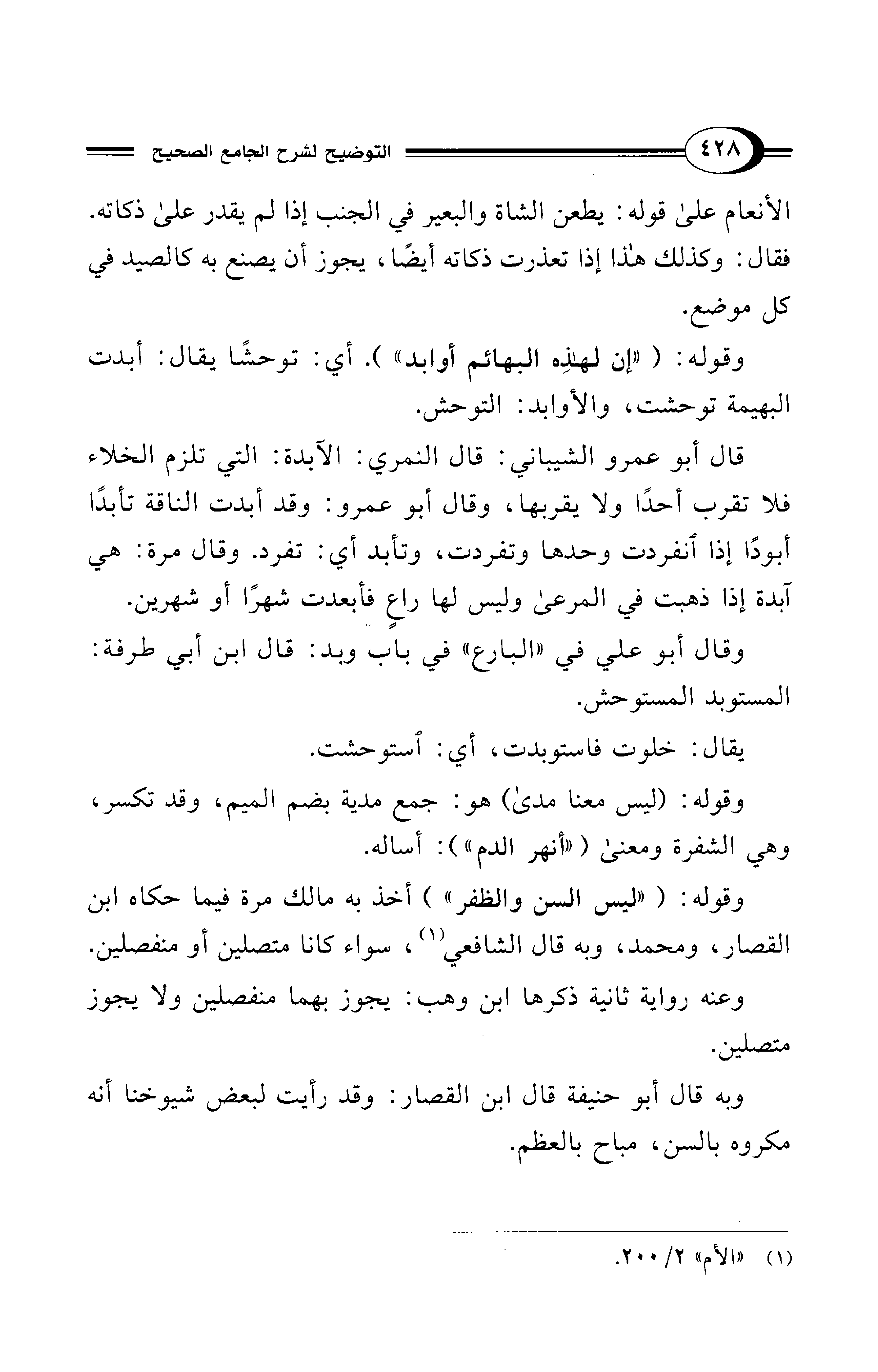 الأنعام على قوله: يطعن الشاة والبعير في الجنب إذا لم يقدر على ذكاته.