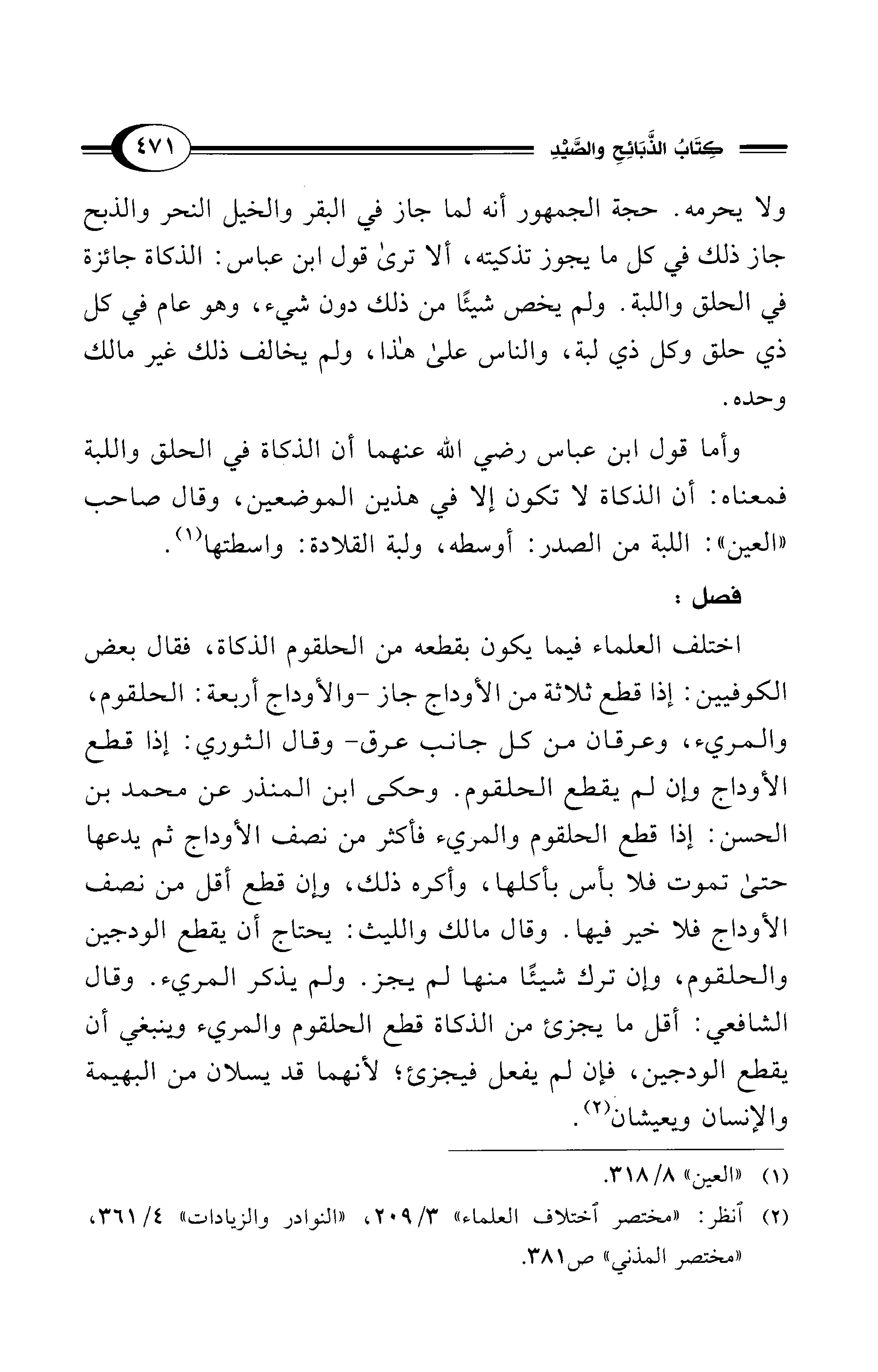 (¬2) انظر: "مختصر اختلاف العلماء" 3/ 209، "النوادر والزيادات" 4/ 361، "مختصر المذني" ص 381.