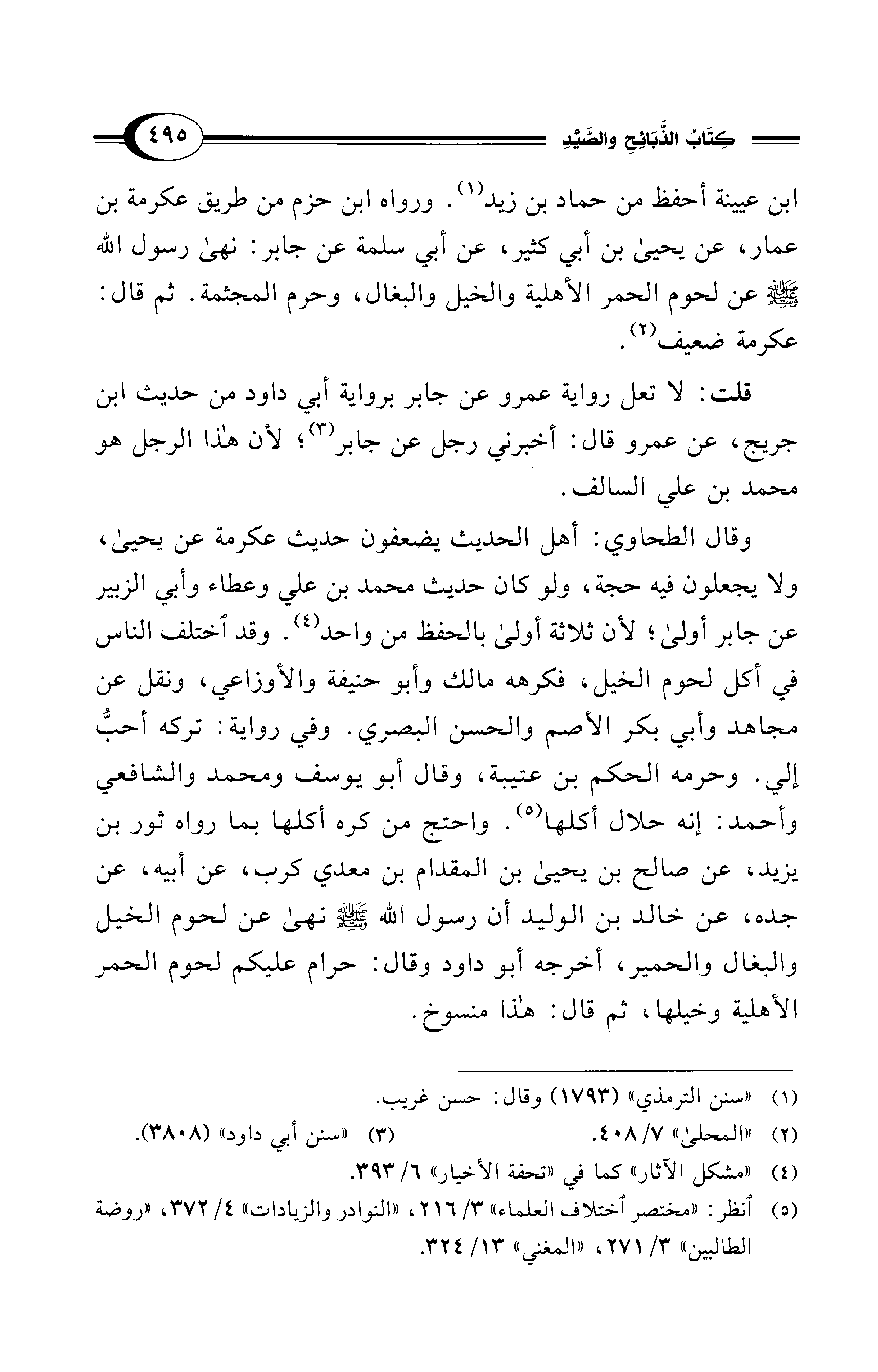 (¬5) انظر: "مختصر اختلاف العلماء" 3/ 216، "النوادر والزيادات" 4/ 372، "روضة الطالبين" 3/ 271، "المغني" 13/ 324.