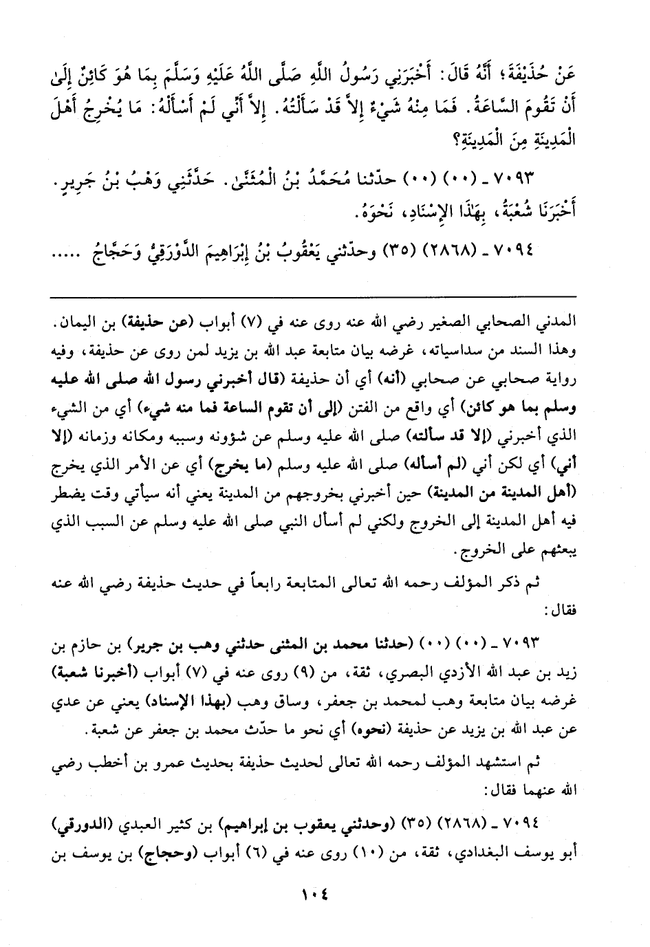 ٧٠٩٤ - (٢٨٦٨) (٣٥) وحدثني يَعْقُوبُ بن إِبْرَاهِيمَ الدَّوْرَقيُّ وَحَجَّاجُ