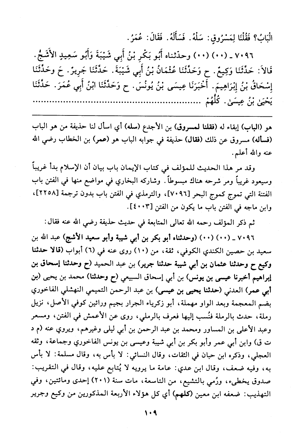 ٧٠٩٦ - (٠٠) (٠٠) وحدثناه أبُو بَكْرِ بن أَبِي شَيبَةَ وَأَبُو سَعِيدٍ الأَشَجُّ. قَالا: حَدَّثَنَا وَكيعٌ. ح وَحَدثَنَا عُثمَانُ بن أَبِي شَيبَةَ. حَدَّثَنَا جَرِيرٌ. حَ وحَدثَنَا إِسْحَاقُ بن إِبرَاهِيمَ. أَخبَرَنَا عِيسَى بن يُونُسَ. ح وَحَدَّثَنَا ابنُ أَبِي عُمَرَ. حَدَّثَنَا يَحيى بْنُ عِيسَى. كُلُّهُم