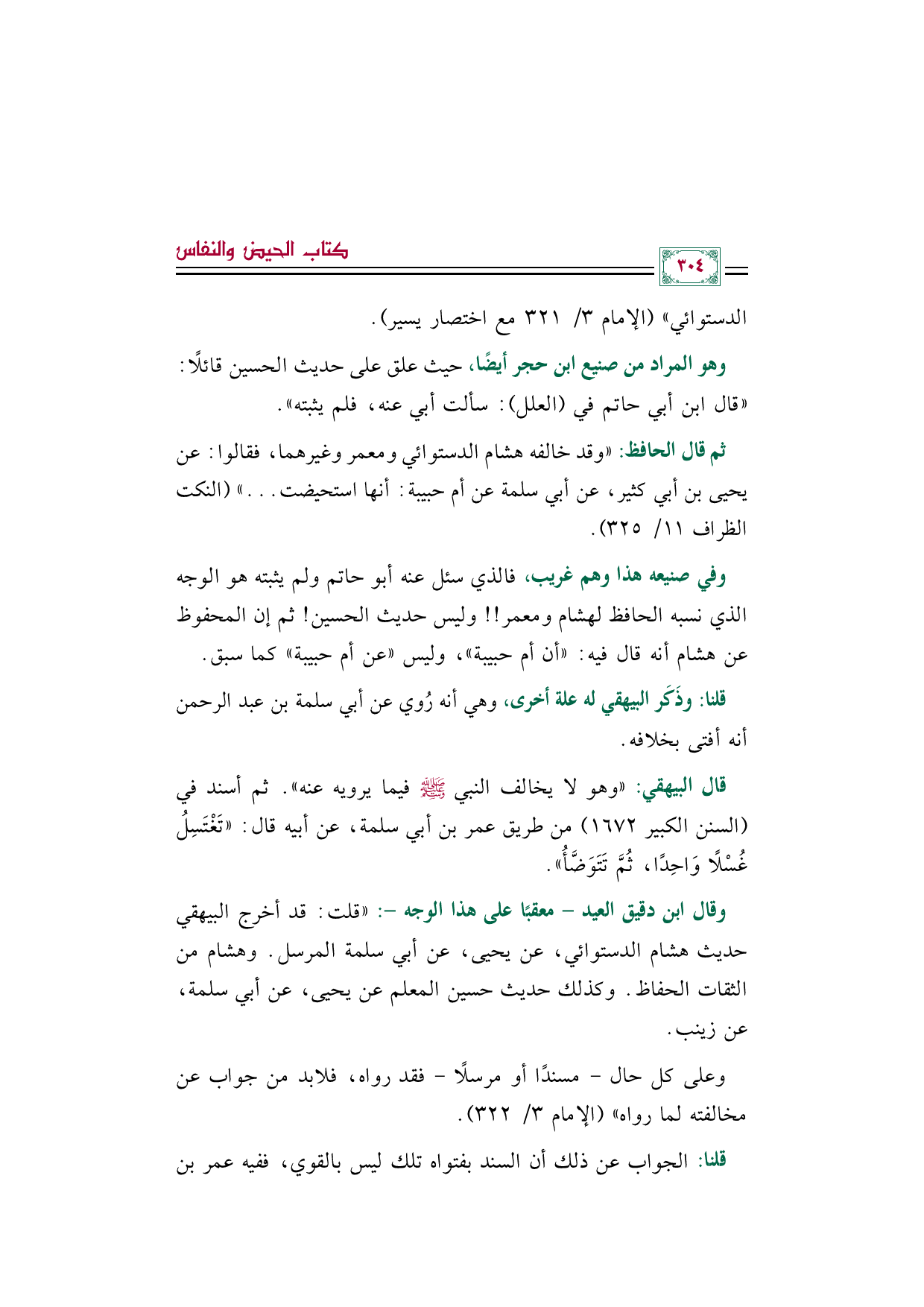 وفي صنيعه هذا وهم غريب، فالذي سئل عنه أبو حاتم ولم يثبته هو الوجه الذي نسبه الحافظ لهشام ومعمر! ! وليس حديث الحسين! ثم إن المحفوظ عن هشام أنه قال فيه: ((أن أم حبيبة))، وليس ((عن أم حبيبة)) كما سبق.