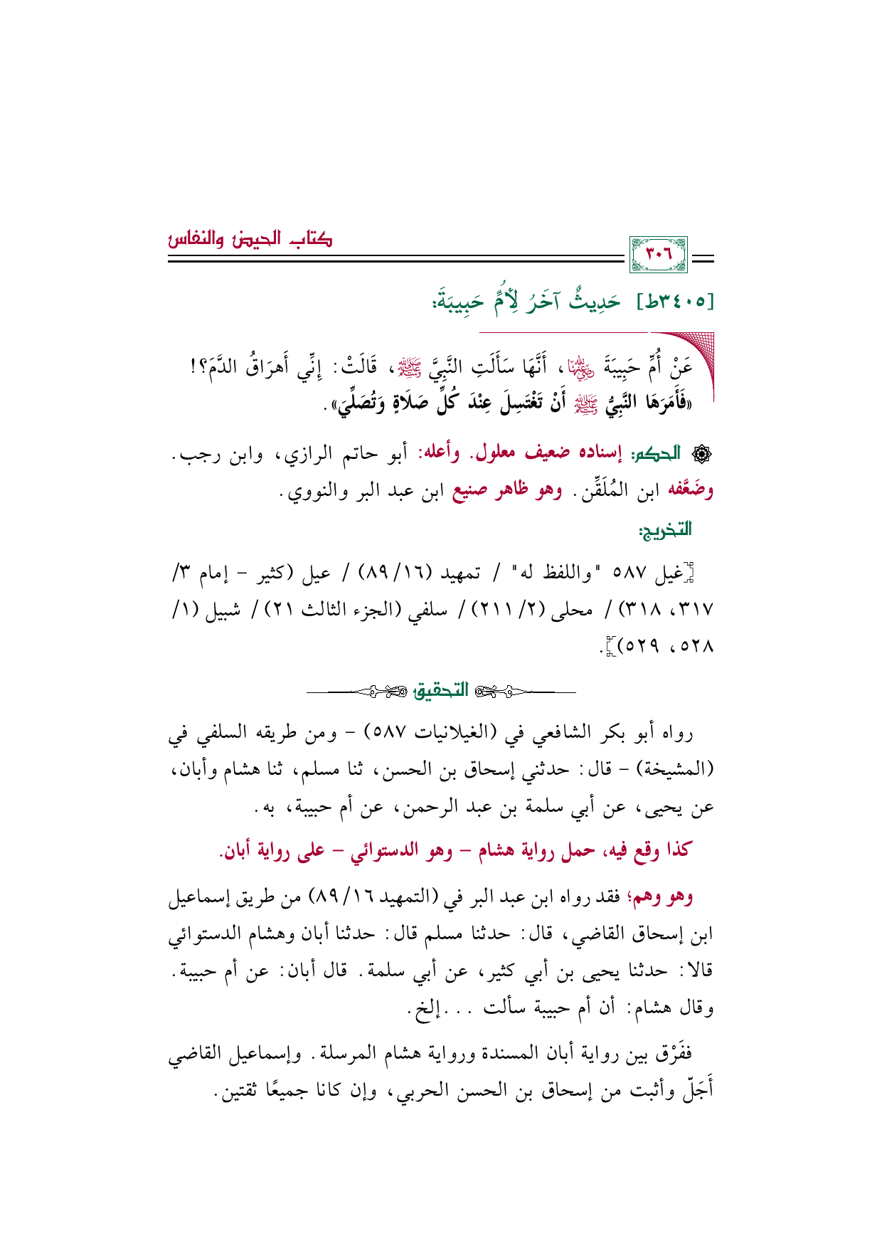 رواه أبو بكر الشافعي في (الغيلانيات ٥٨٧) -ومن طريقه السلفي في (المشيخة) - قال: حدثني إسحاق بن الحسن، ثنا مسلم، ثنا هشام وأبان، عن يحيى، عن أبي سلمة بن عبد الرحمن، عن أم حبيبة، به.