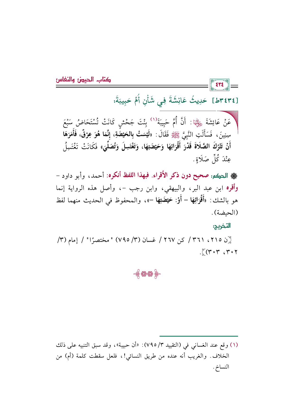 (¬١) - وقع عند الغساني في (التقييد ٣/ ٧٩٥): ((أن حبيبة))، وقد سبق التنبيه على ذلك الخلاف. والغريب أنه عنده من طريق النسائي! ، فلعل سقطت كلمة (أم) من النساخ.
