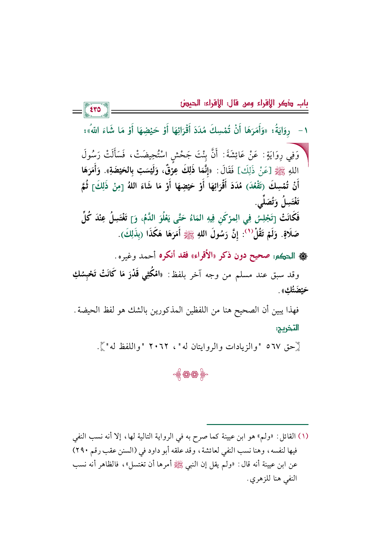 فهذا يبين أن الصحيح هنا من اللفظين المذكورين بالشك هو لفظ الحيضة.