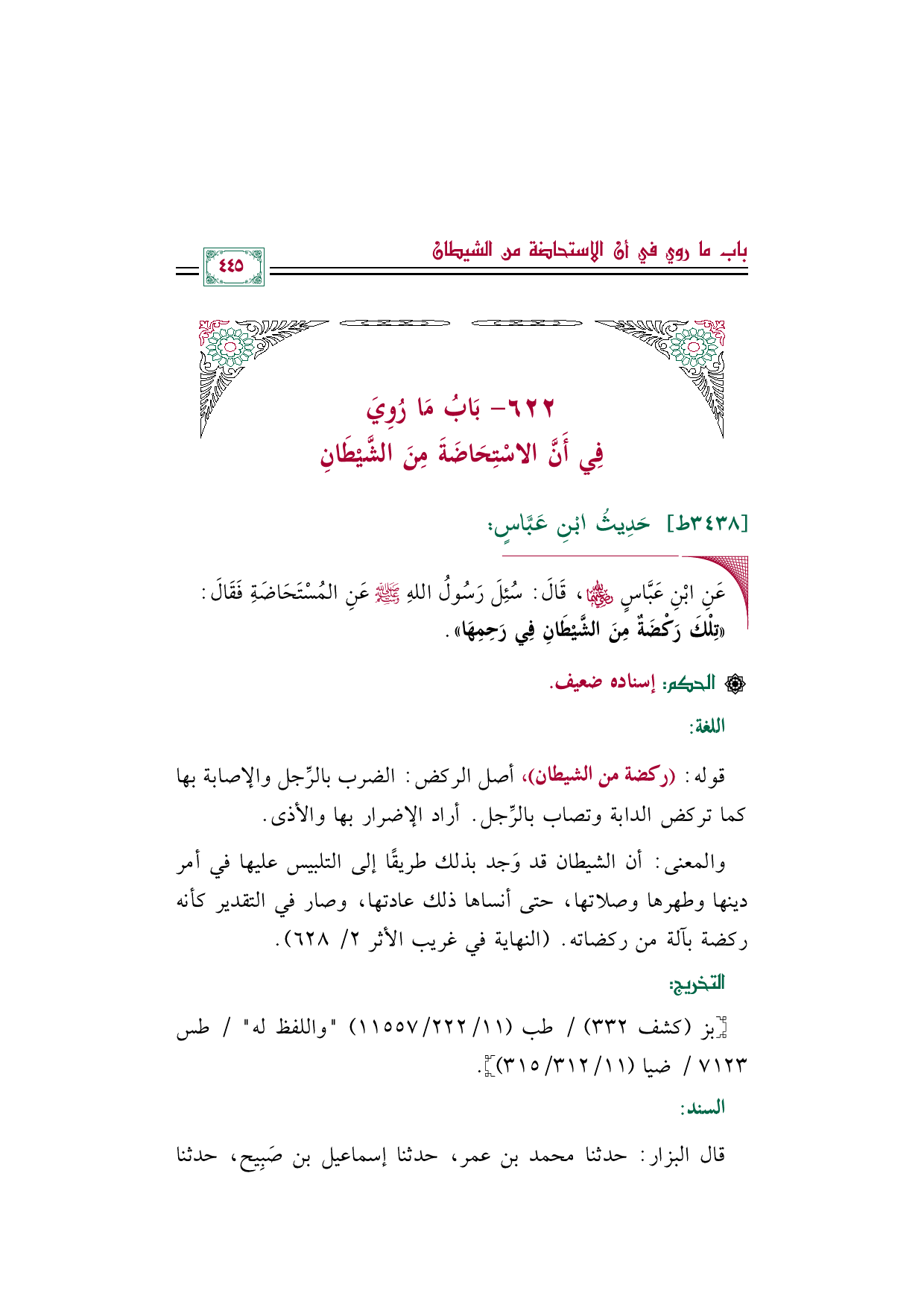 والمعنى: أن الشيطان قد وَجد بذلك طريقًا إلى التلبيس عليها في أمر دينها وطهرها وصلاتها، حتى أنساها ذلك عادتها، وصار في التقدير كأنه ركضة بآلة من ركضاته. (النهاية في غريب الأثر ٢/ ٦٢٨).