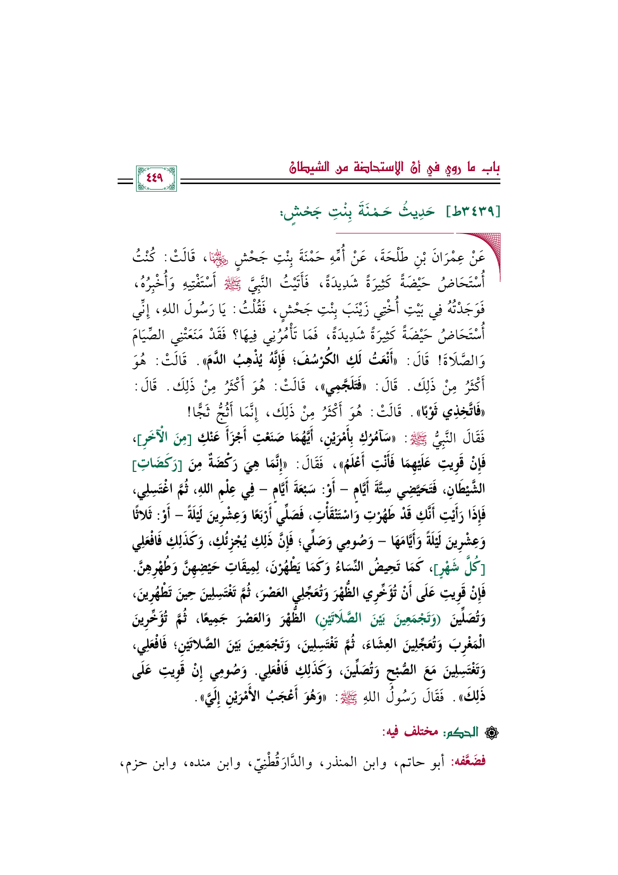 ٣٤٣٩ - حَدِيثُ حَمْنَةَ بِنْتِ جَحْشٍ: