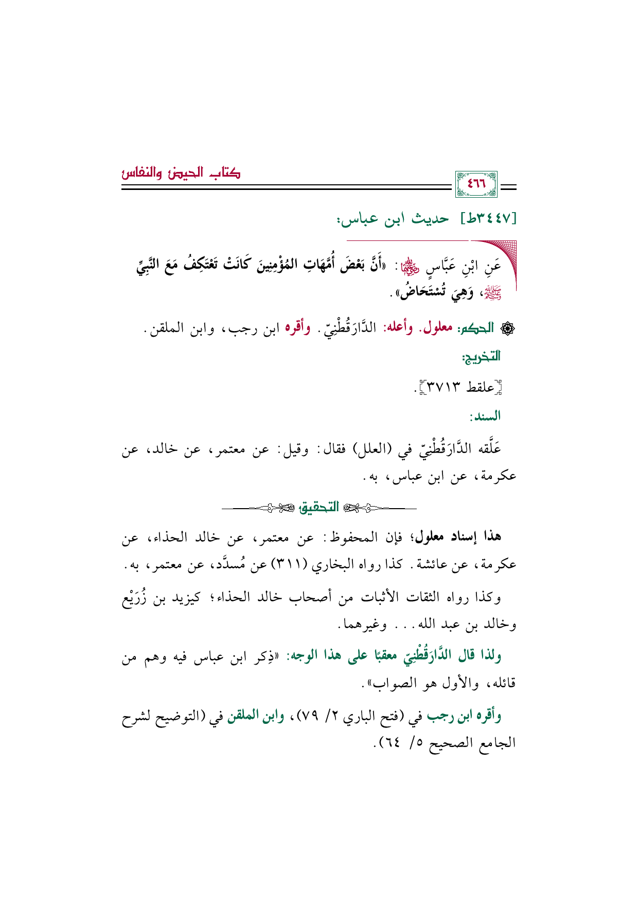 عَلَّقه الدَّارَقُطْنِيّ في (العلل) فقال: وقيل: عن معتمر، عن خالد، عن عكرمة، عن ابن عباس، به.