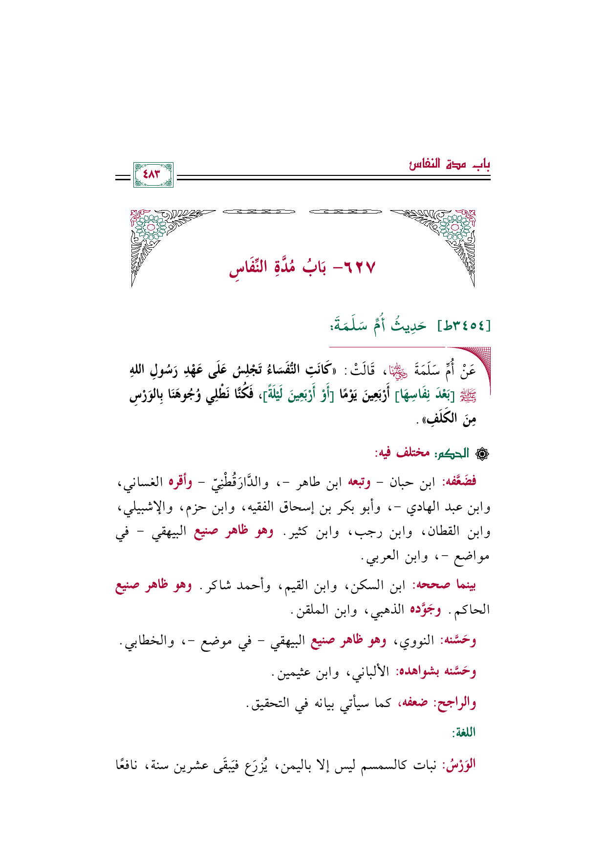 فضَعَّفه: ابن حبان - وتبعه ابن طاهر -، والدَّارَقُطْنِيّ - وأقره الغساني، وابن عبد الهادي -، وأبو بكر بن إسحاق الفقيه، وابن حزم، والإشبيلي، وابن القطان، وابن رجب، وابن كثير. وهو ظاهر صنيع البيهقي -في مواضع-، وابن العربي.