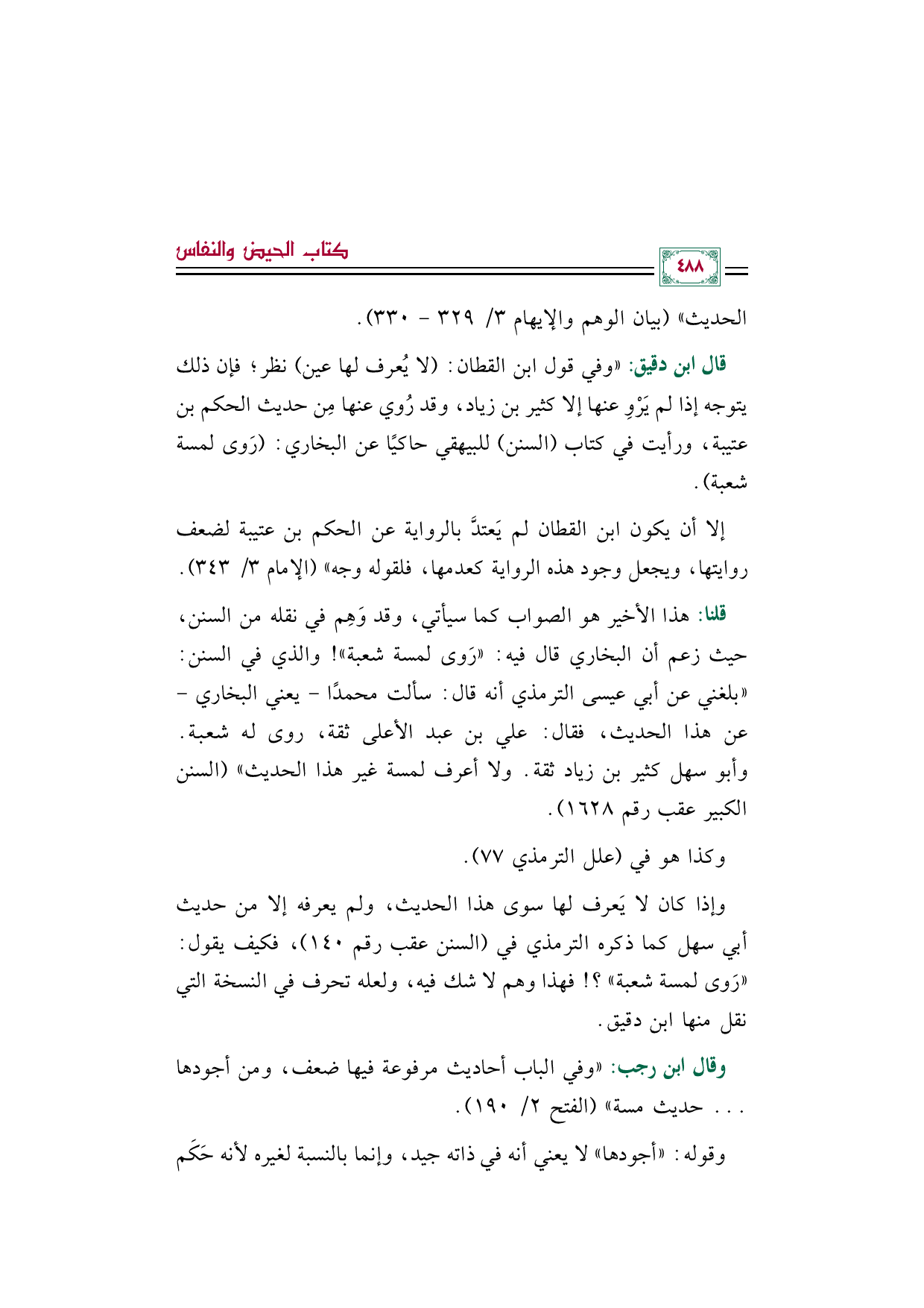الحديث)) (بيان الوهم والإيهام ٣/ ٣٢٩ - ٣٣٠).